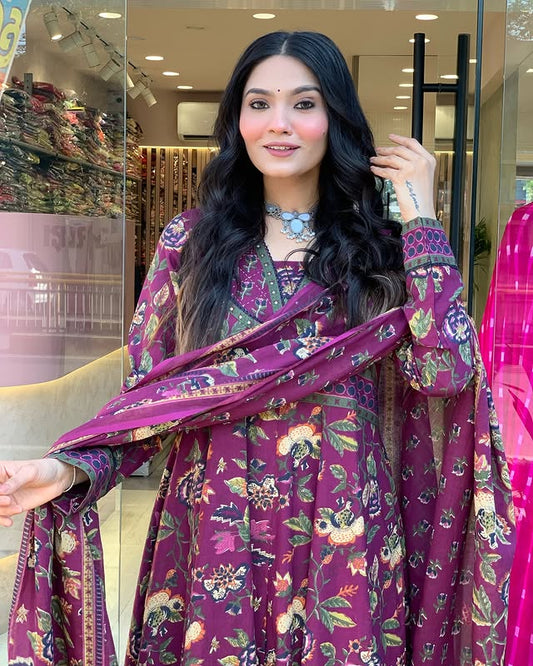Launching Summer Cool, Comfortable And Attractive Softest Muslin Suit Set Which Is Beautifully Decorated With Hand Embroidery And Thread Work. It Is Paired With Matching Pants And Dupatta(WARED17)