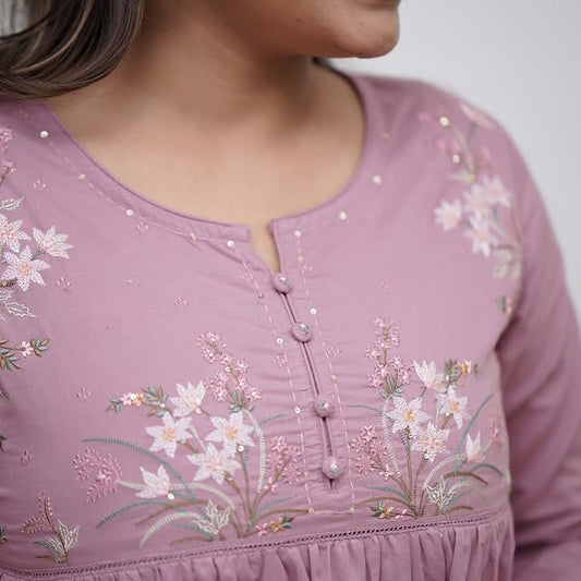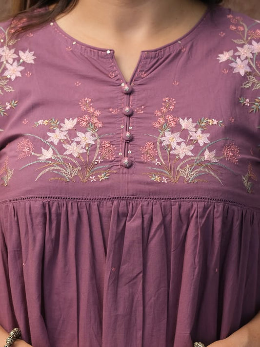 Launching Summer Special, Comfortable And Attractive Pure Cotton Suit Set Which Is Beautifully Decorated With Hand Embroidery And Thread Work. It Is Paired With Matching Pants(SWCD59)