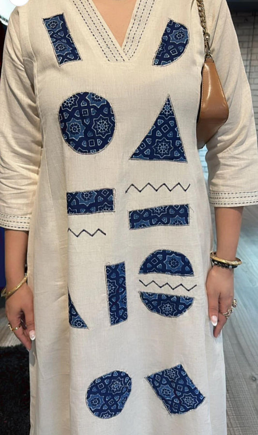 Classy Cotton Flex Off-White Kurta With Embroidered Yoke(SWCD63)