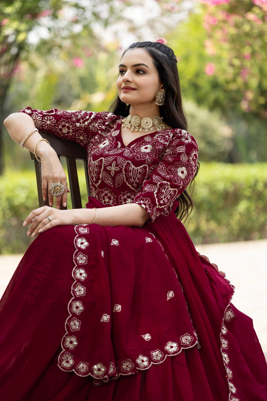 WEDDING SPECIAL GEORGETTE BEADS SEQUANCE EMBROIDERED GOWN WITH DUPATTA (WDN40)