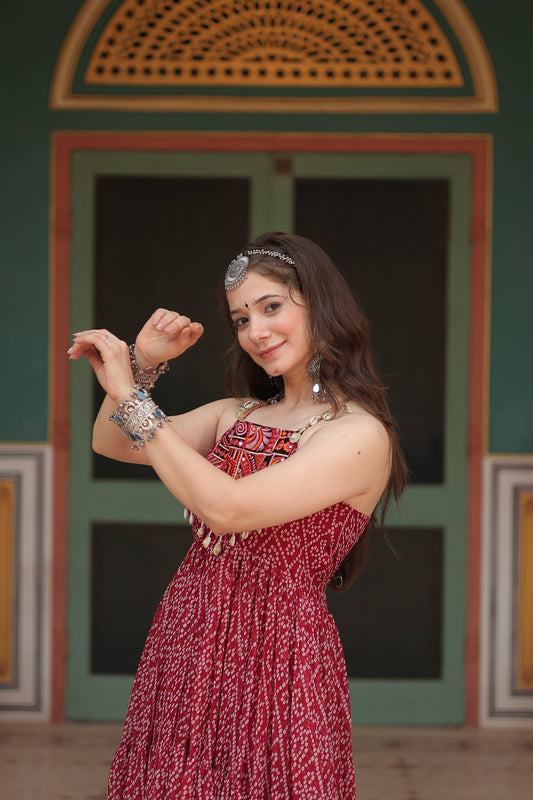 NAVRATRI SPECIAL BANDHANI PRINT PATCHWORK GOWN (WDN48)