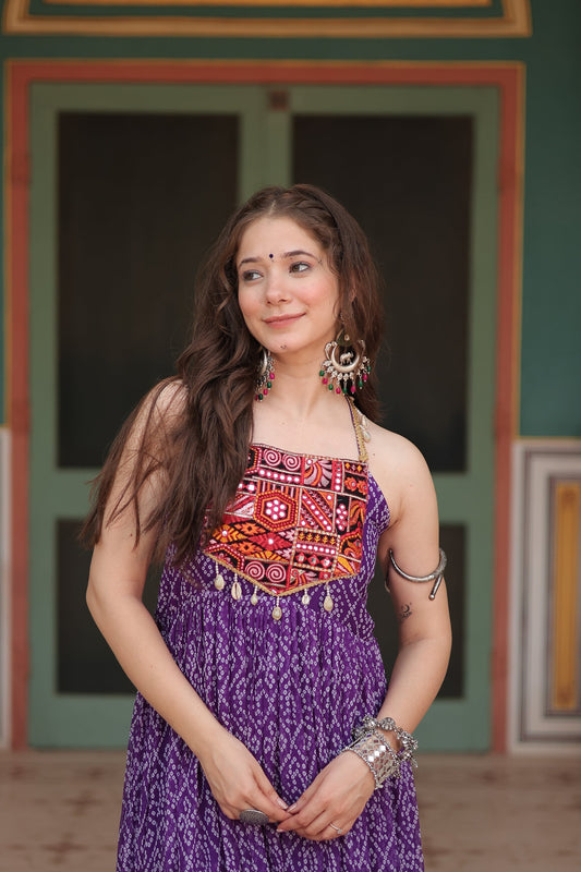 NAVRATRI SPECIAL BANDHANI PRINT PATCHWORK GOWN (WDN48) 01