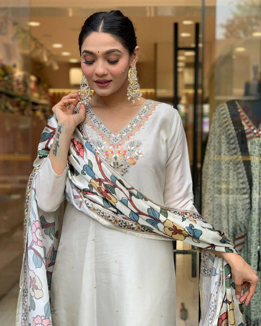 Kurta with hand with Embroidery work detailing on women's printed cotton kurta pant or dupatta set(NFRD468)