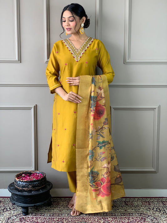 Kurta with hand with Embroidery work detailing on women's printed cotton kurta pant or dupatta set(NFRD464)