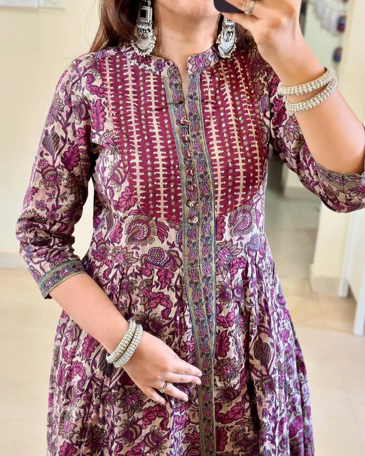 β₯οΈβ₯οΈ NEW FULL COTTON PRINT HAND WORK ANARKALI KURTI PANT DUPATTA ππ(WARED11)