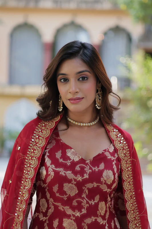 WEDDING SPECIAL VISCOSE GEORGETTE JACQUARD GHARARA SET WITH DUPATTA(WD120)