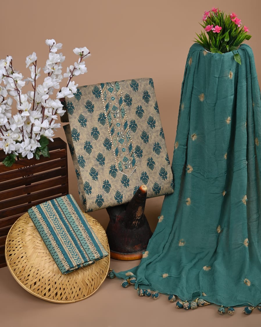 Pair this beautiful cotton fabric with a matching duppata and you're set to take on the day.