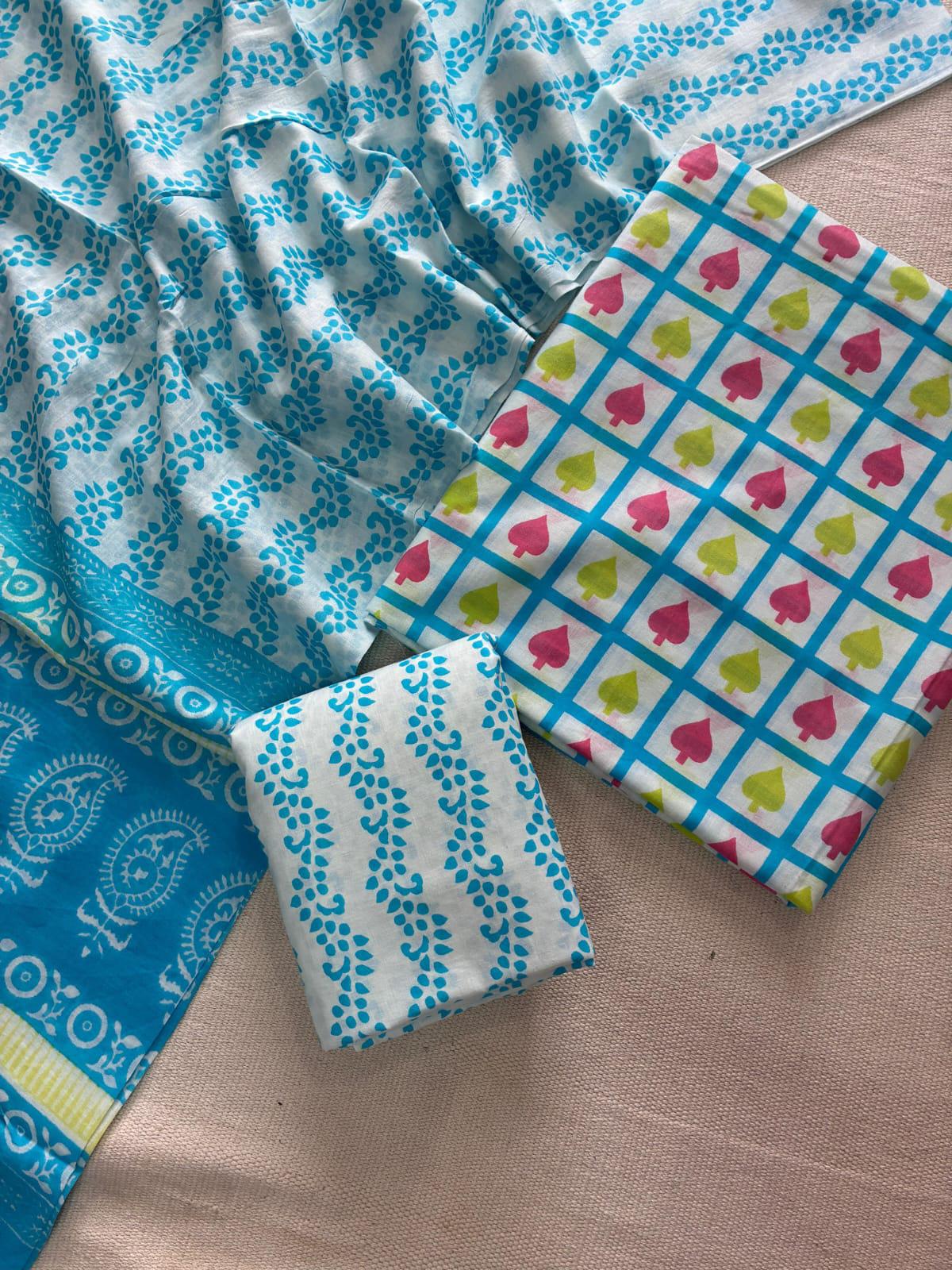 Flat 10% Buy 2 get 10% off ELEGANT HAND BLOCK PRINT COTTON SUIT SET WITH MULMUL DUPATTA(WACOTMU79)