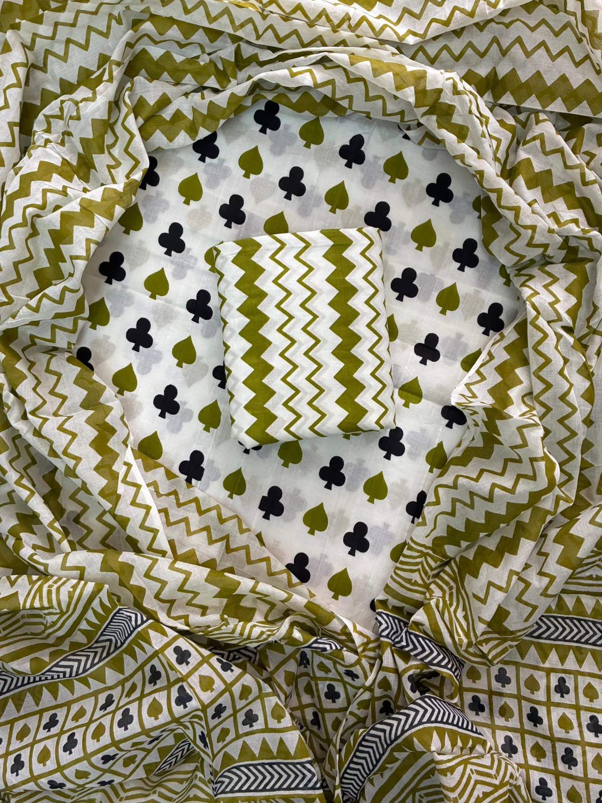 Designer Hand Block Print Cotton Suit Set with Mulmul Dupatta(WACOTMU98)