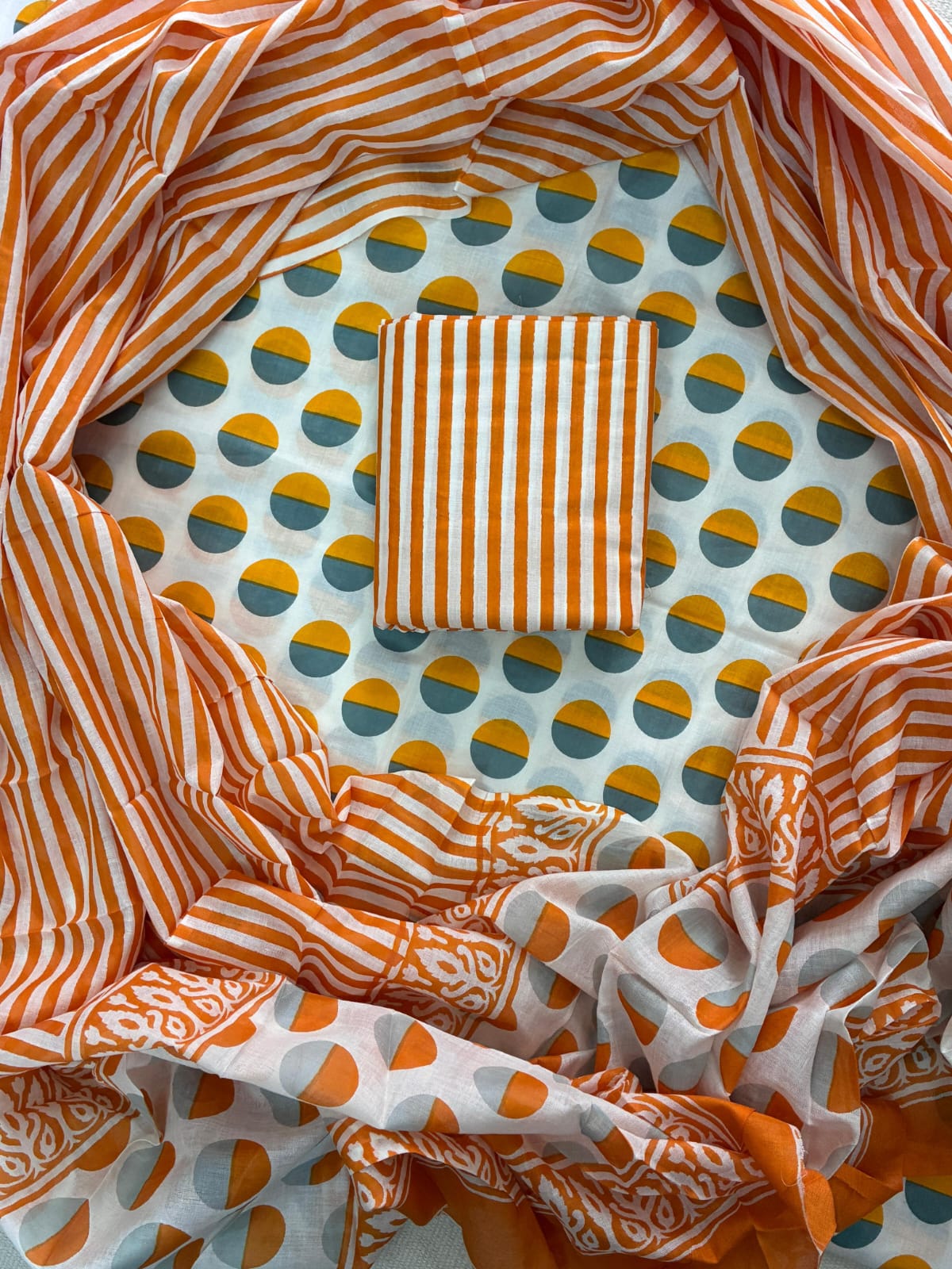 Flat 10% Buy 2 get 10% off ELEGANT HAND BLOCK PRINT COTTON SUIT SET WITH MULMUL DUPATTA(WACOTMU104)