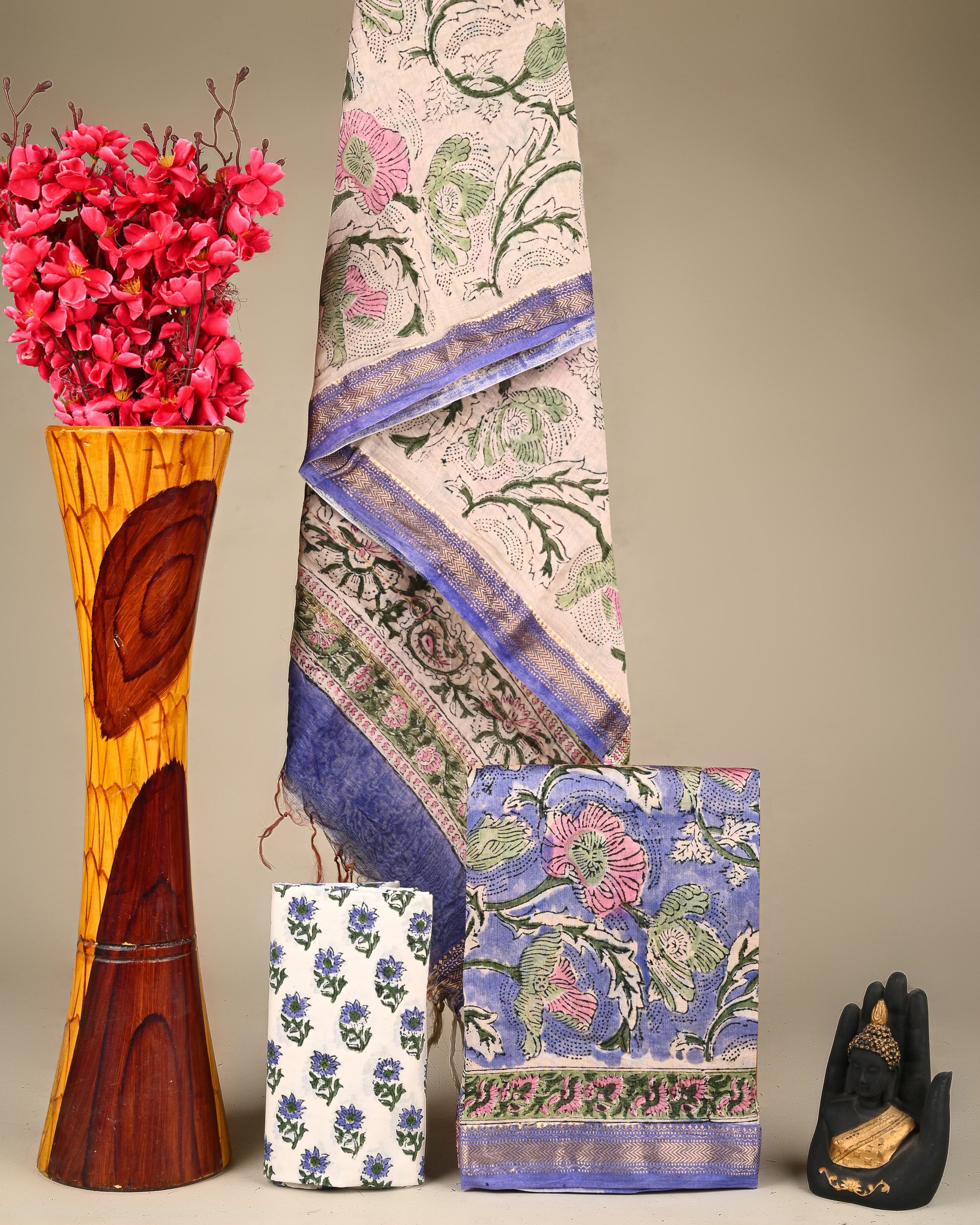 Flat 10% Buy 2 get 10% off EXCLUSIVE ELEGANT HAND BLOCK PRINT MAHESHWARI SILK SUIT SET 32