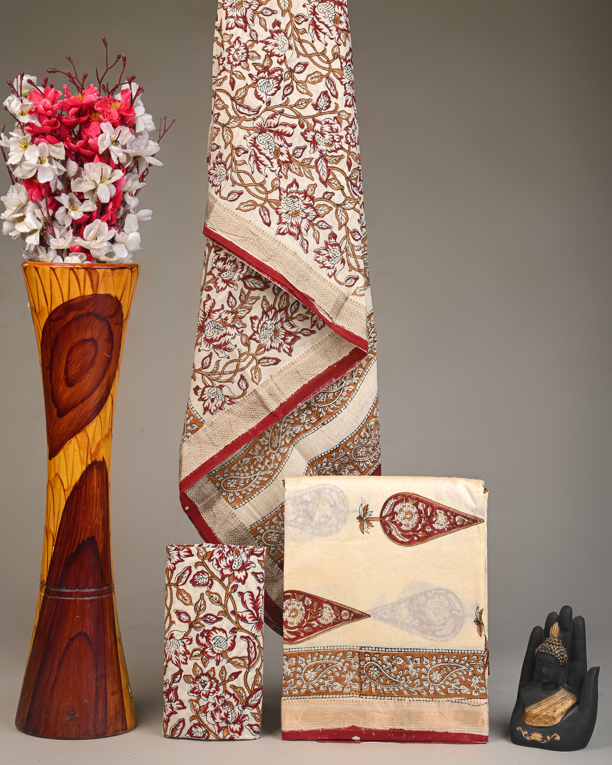 Flat 10% Buy 2 get 10% off DESIGNER HAND BLOCK PRINT MAHESHWARI SILK SUIT SE 33