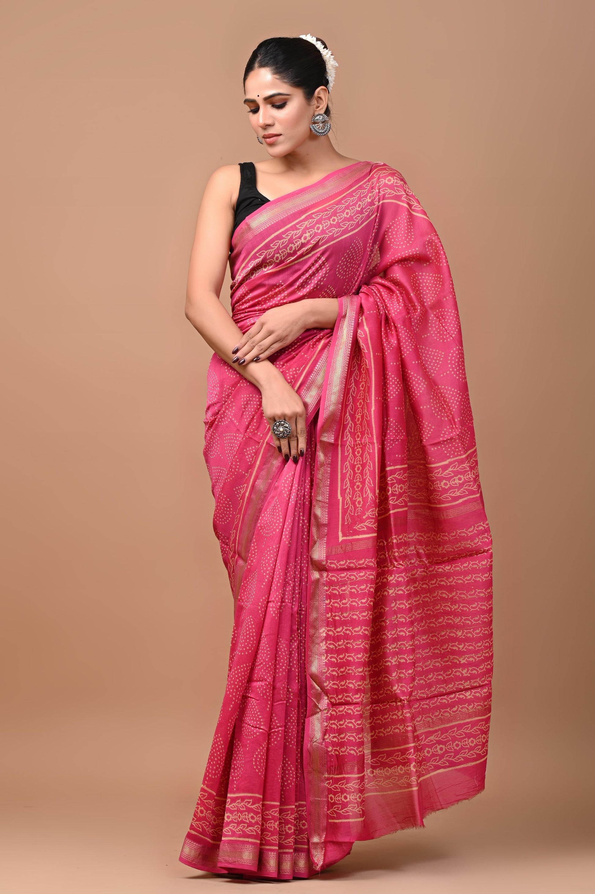Flat 10% Buy 2 get 10% off Exclusive Hand Block Printed Maheshwari Silk Saree (SWSRMAH05)