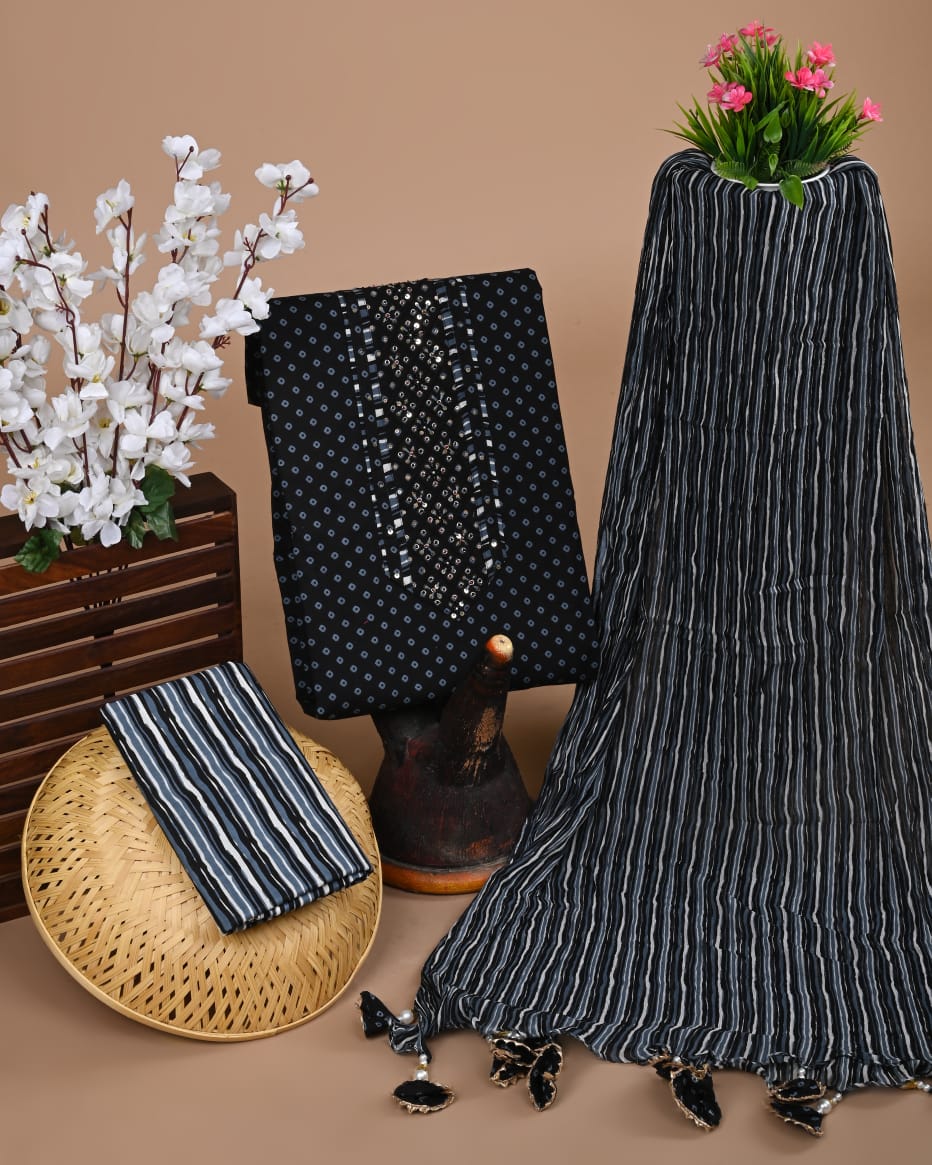 Pair this beautiful cotton fabric with a matching duppata and you're set to take on the day.