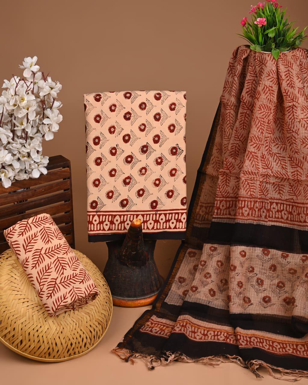 New Hand Block Print Cotton Suit Set with Kota Doria Dupatta