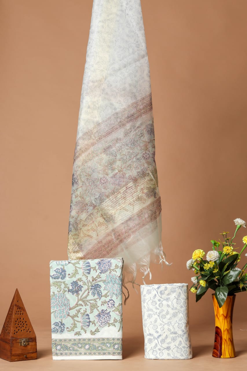 HAND BLOCK PRINT COTTON SUIT SET WITH ORGANZA DUPATTA (SWORG19)