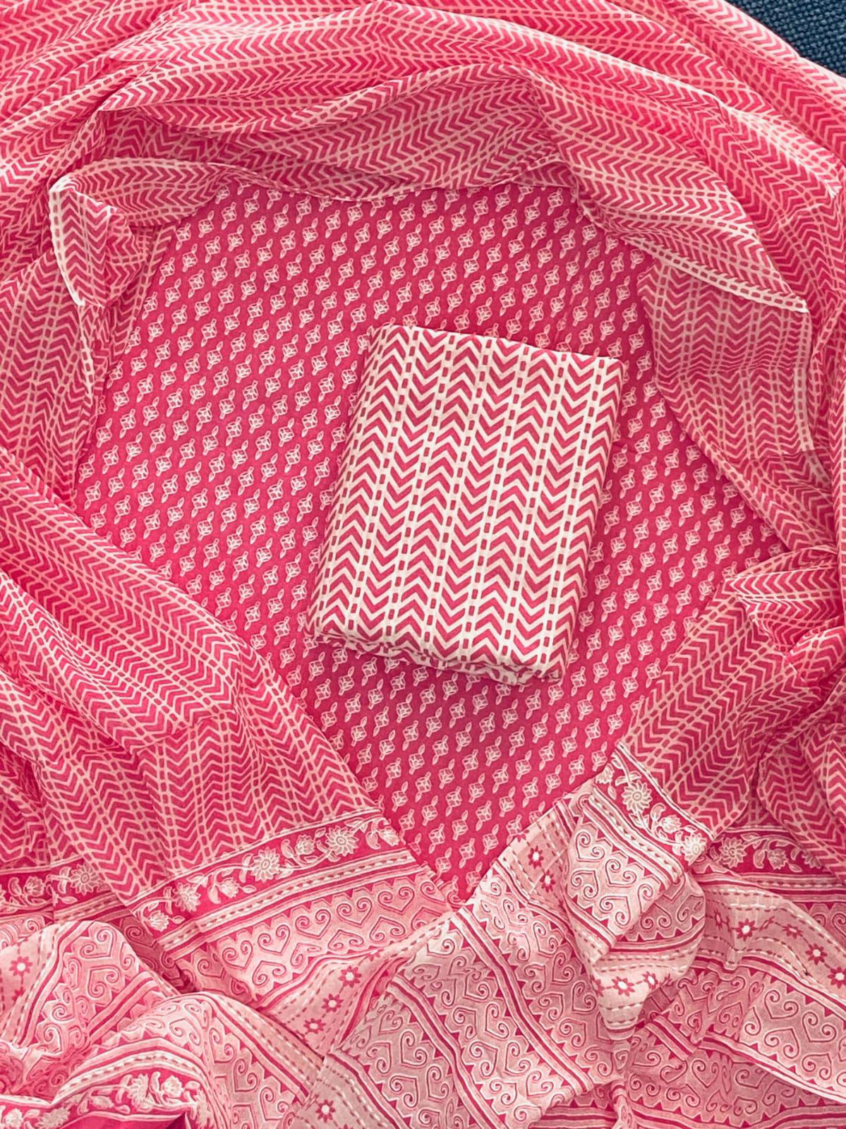 Flat 10% Buy 2 get 10% off Premium hand block printed cotton suit with cotton dupatta