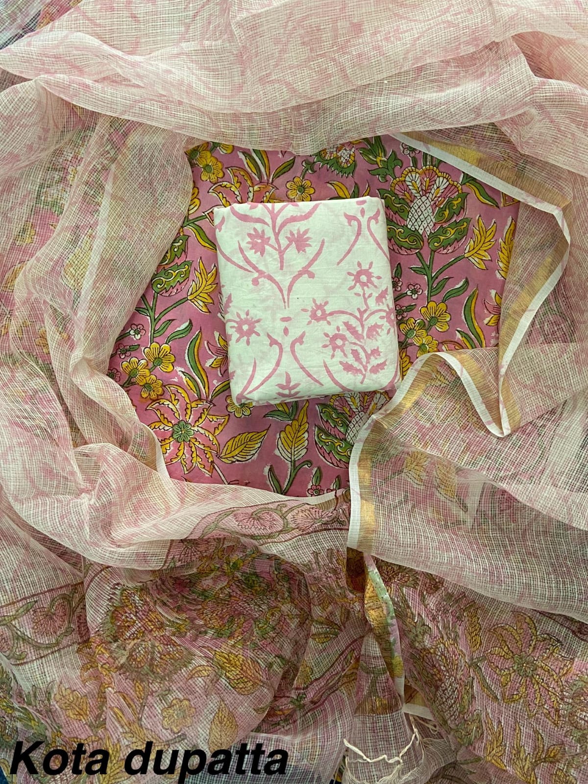 Suits Wala Hand Block Print Cotton Suit Set with Kota Doria Dupatta