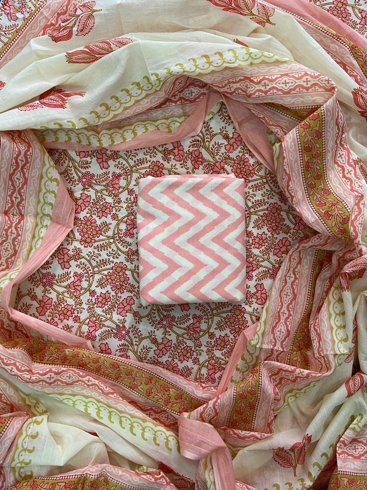 Designer Hand Block Print Cotton Suit Set with Mulmul Dupatta(WACOTMU127)