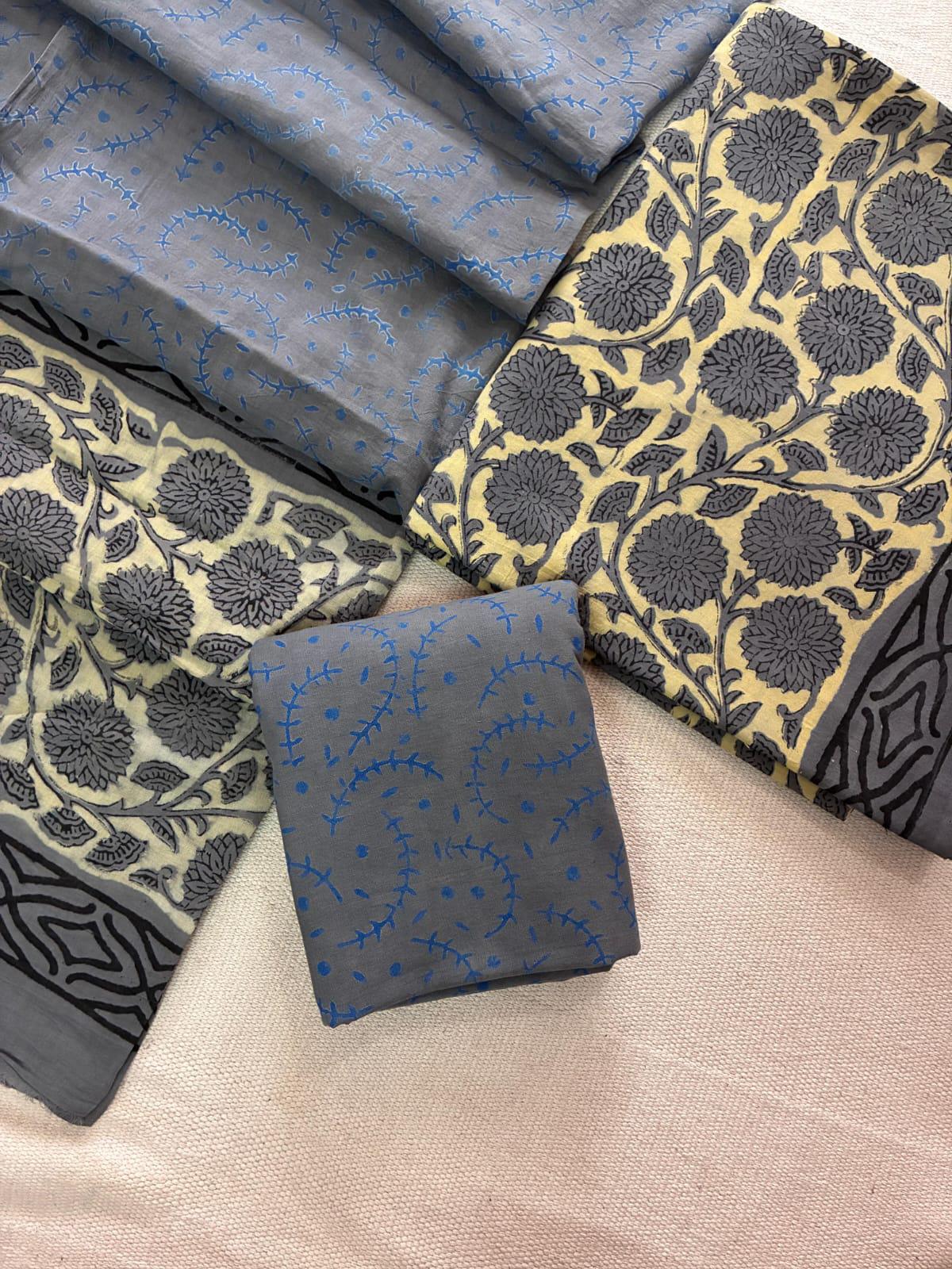 Designer Hand Block Print Cotton Suit Set with Mulmul Dupatta(WACOTMU114)