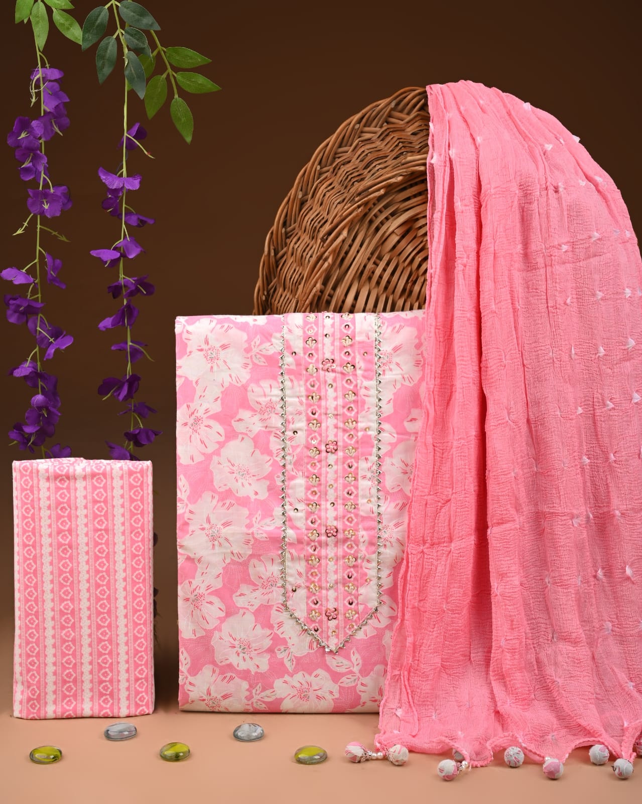 Flat 10% Buy 2 get 10% off Designer zari gotapatti work Cotton Suit with chiffon dupatta(WAGP68)