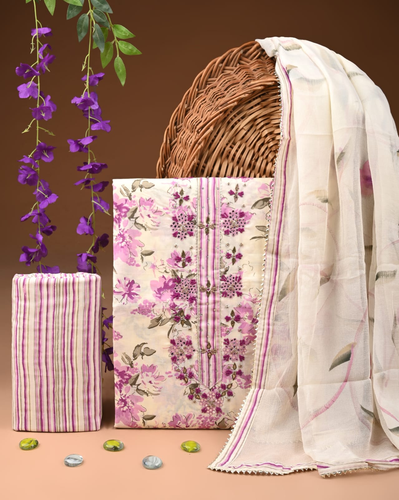 Flat 10% Buy 2 get 10% off Designer zari gotapatti work Cotton Suit with chiffon dupatta(WAGP69)