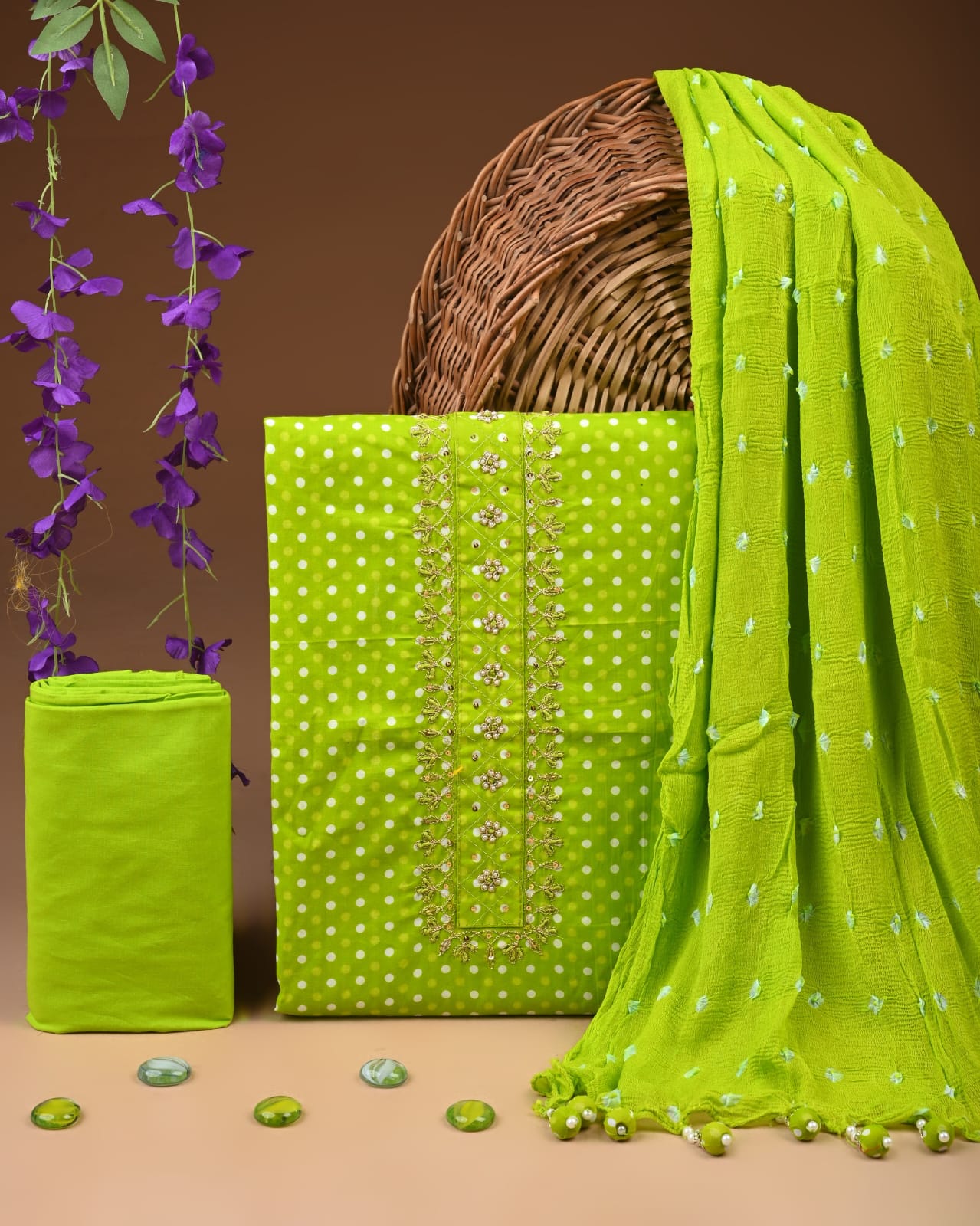 Flat 10% Buy 2 get 10% off Designer zari gotapatti work Cotton Suit with chiffon dupatta(WAGP74)