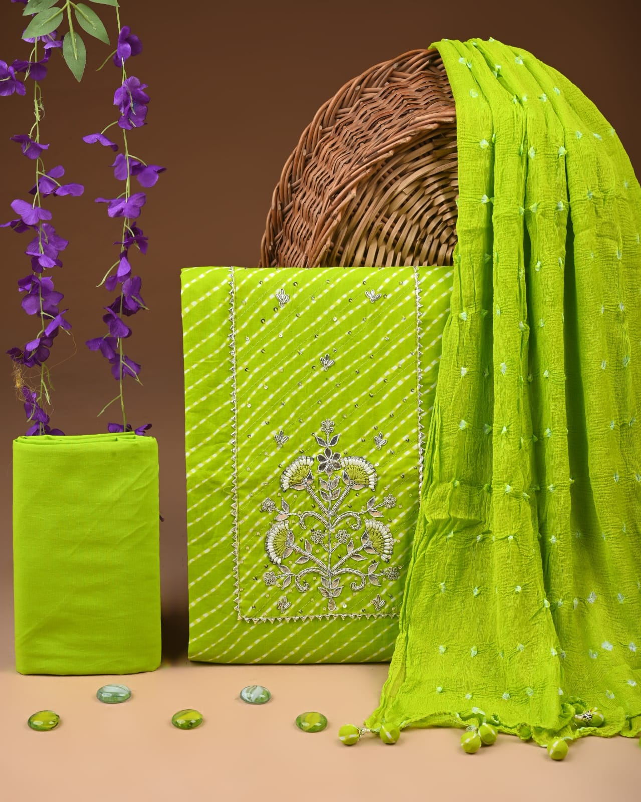 Flat 10% Buy 2 get 10% off Designer zari gotapatti work Cotton Suit with chiffon dupatta(WAGP77)
