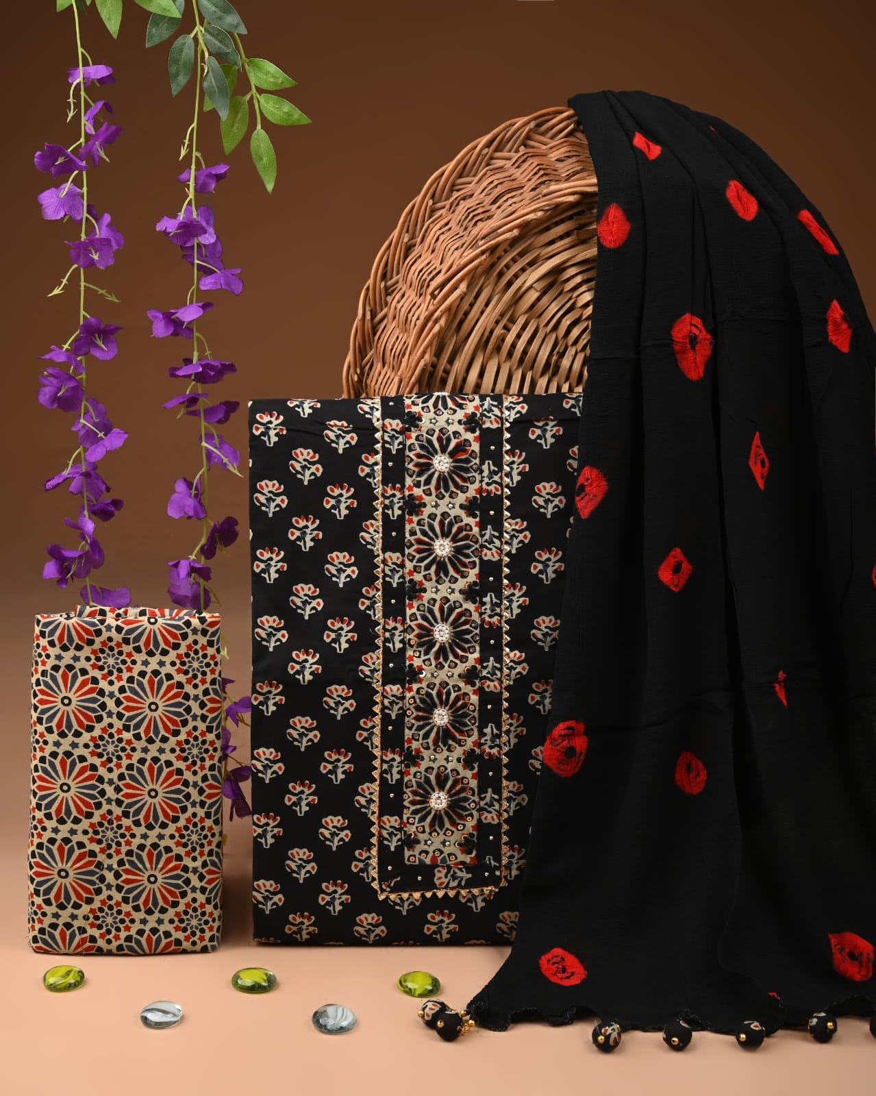 Flat 10% Buy 2 get 10% off Designer zari gotapatti work Cotton Suit with chiffon dupatta(WAGP78)