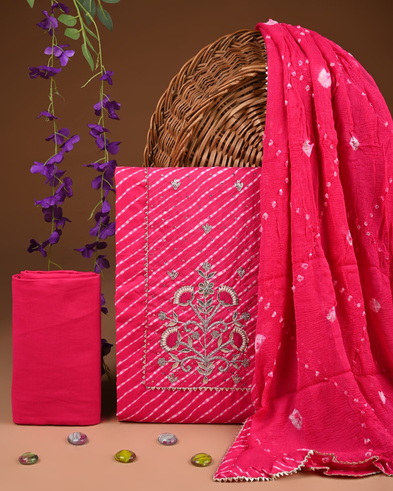 Flat 10% Buy 2 get 10% off Designer zari gotapatti work Cotton Suit with chiffon dupatta(WAGP84)