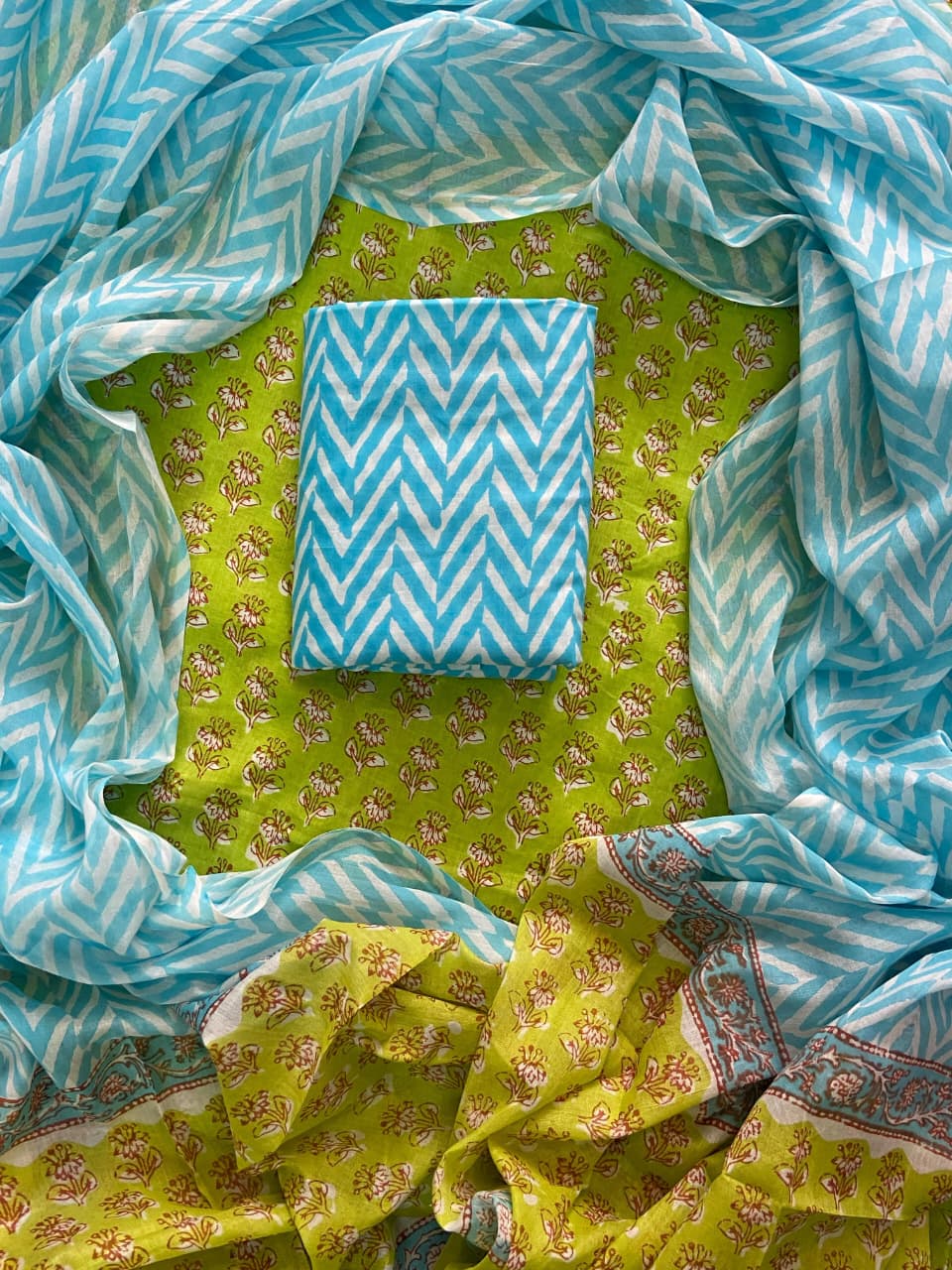 Flat 10% Buy 2 get 10% off ELEGANT HAND BLOCK PRINT COTTON SUIT SET WITH MULMUL DUPATTA(WACOTMU03)