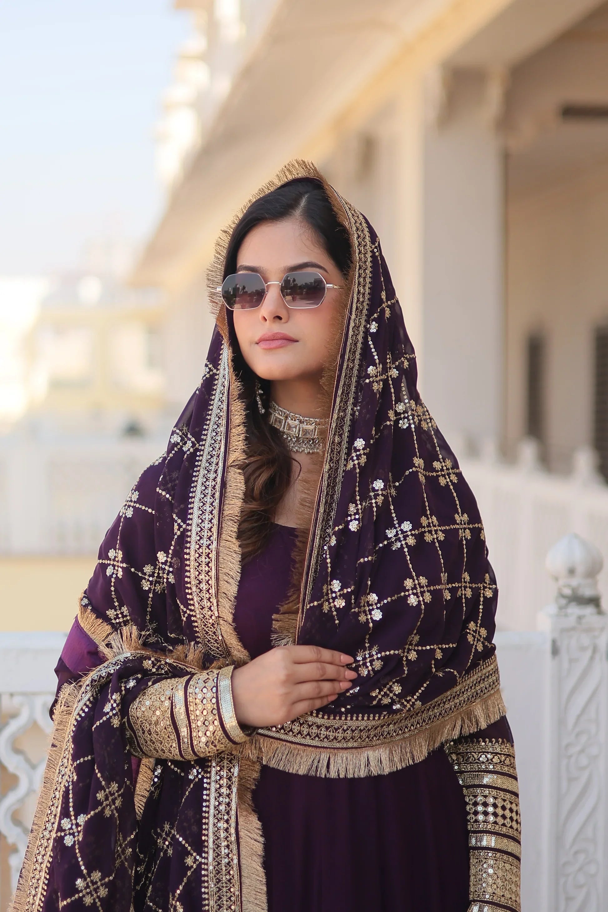 Faux Blooming Gown with Dupatta With Attractive Embroidered Sequins work with Lace Border(WARED335)
