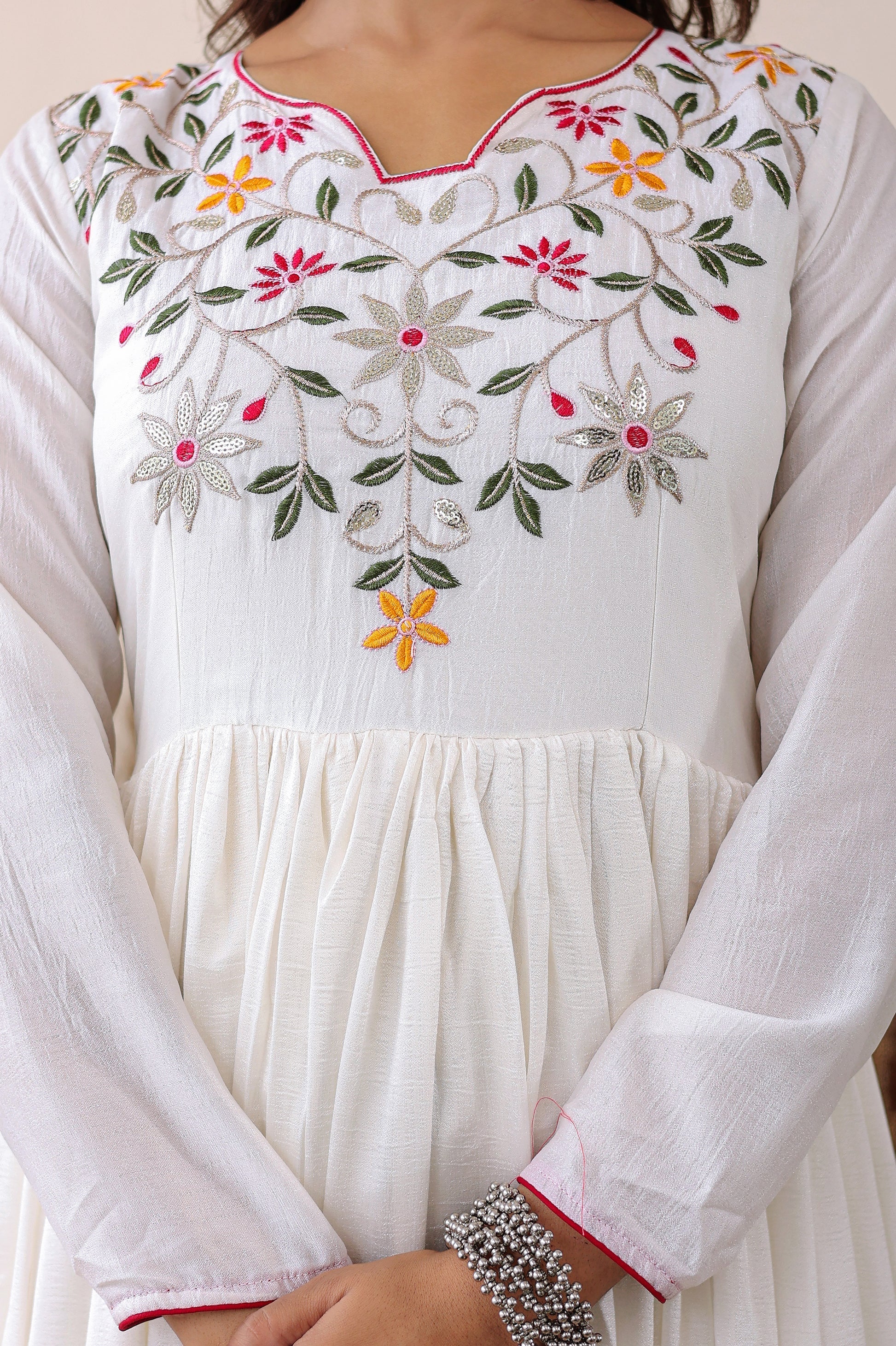 👉🏻 FABRIC & WORK:- CHINON with Zari Thread & Sequins Embroidery.