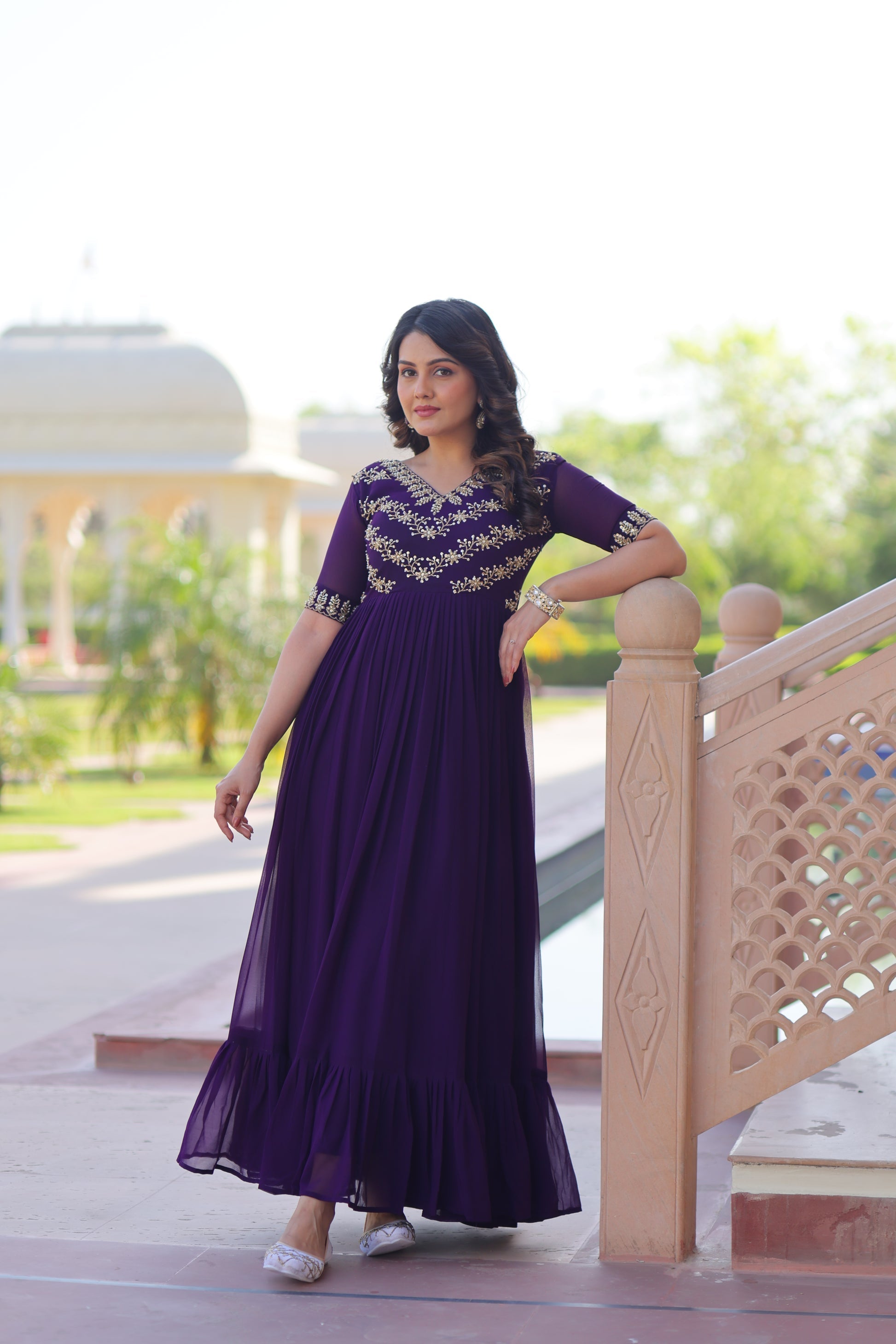 Flat 10% Buy 2 get 10% off FESTIVAL SPECIAL FAUX BLOOMING BEADS EMBROIDERED GOWNFESTIVAL SPECIAL FAUX BLOOMING BEADS EMBROIDERED GOWN(WDN56)