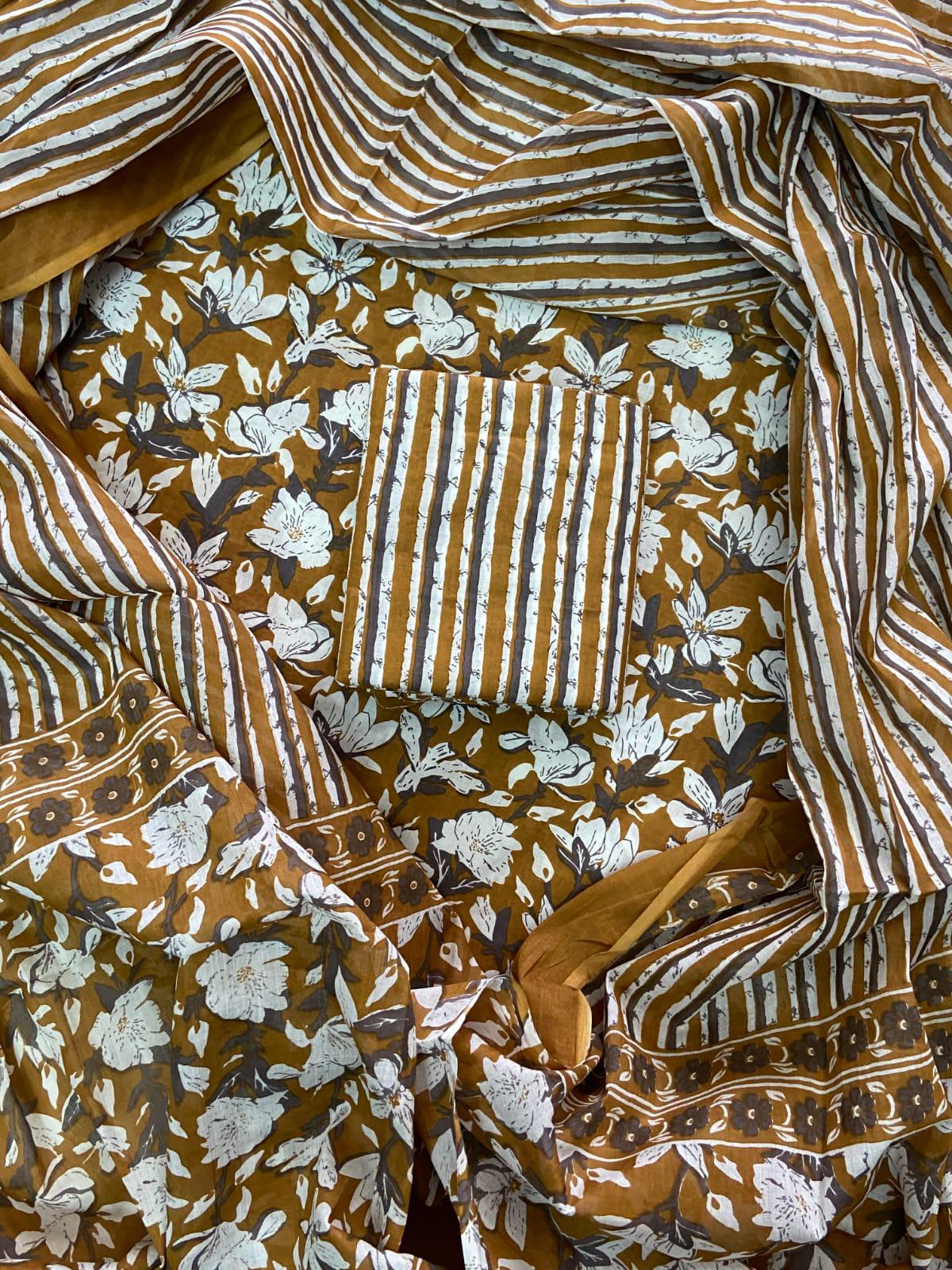 Flat 10% Buy 2 get 10% off TRADITIONAL HAND BLOCK PRINT COTTON SUIT SET WITH MULMUL DUPATTA