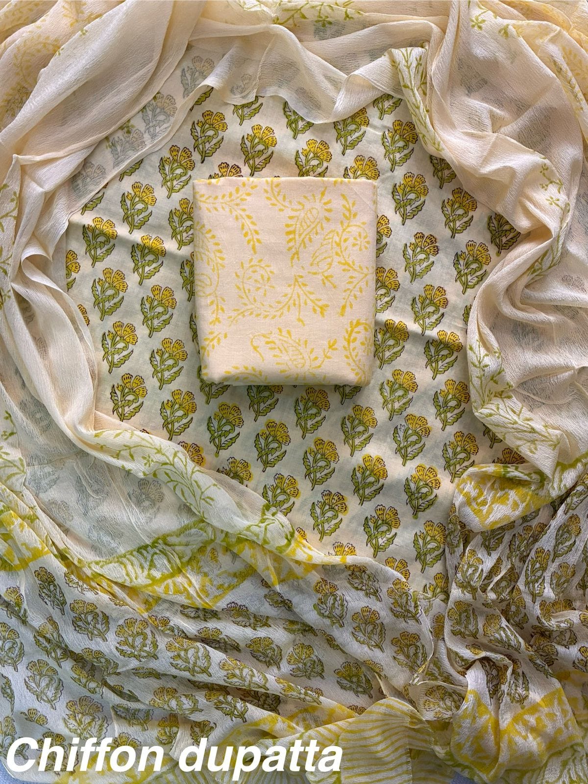 Flat 10% Buy 2 get 10% off JAAL HAND BLOCK PRINT COTTON SUIT SET WITH CHIFFON DUPATTA(WACFCOTMU114)