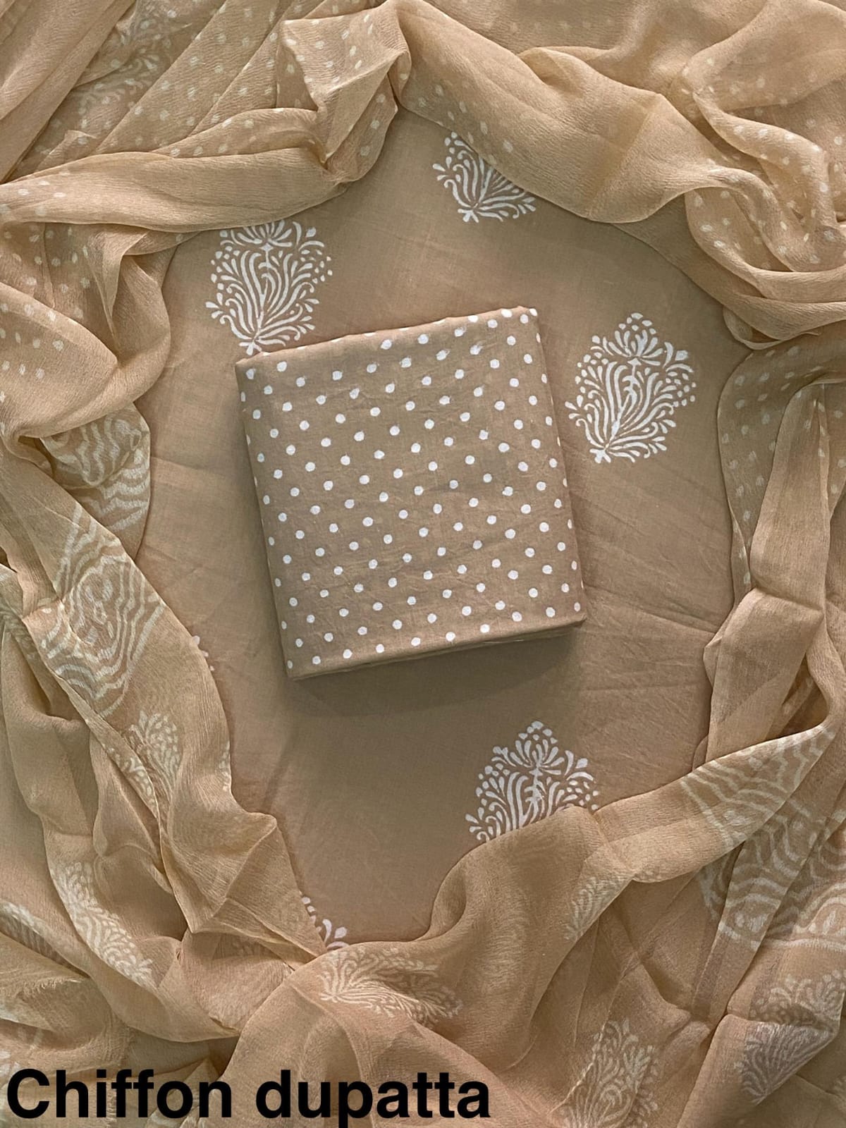 Flat 10% Buy 2 get 10% off JAAL HAND BLOCK PRINT COTTON SUIT SET WITH CHIFFON DUPATTA(WACFCOTMU138)