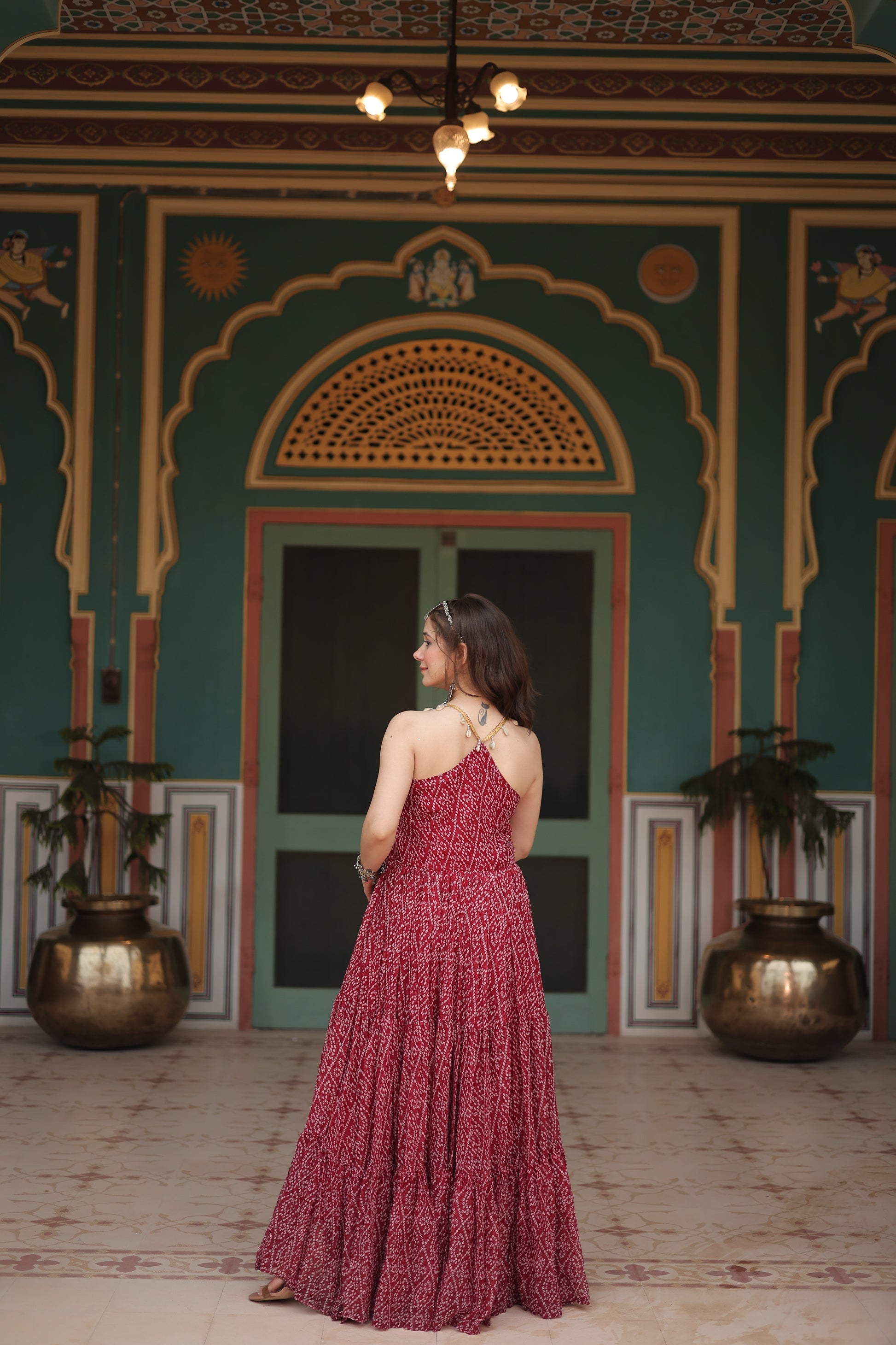 Flat 10% Buy 2 get 10% off NAVRATRI SPECIAL BANDHANI PRINT PATCHWORK GOWN (WDN48)