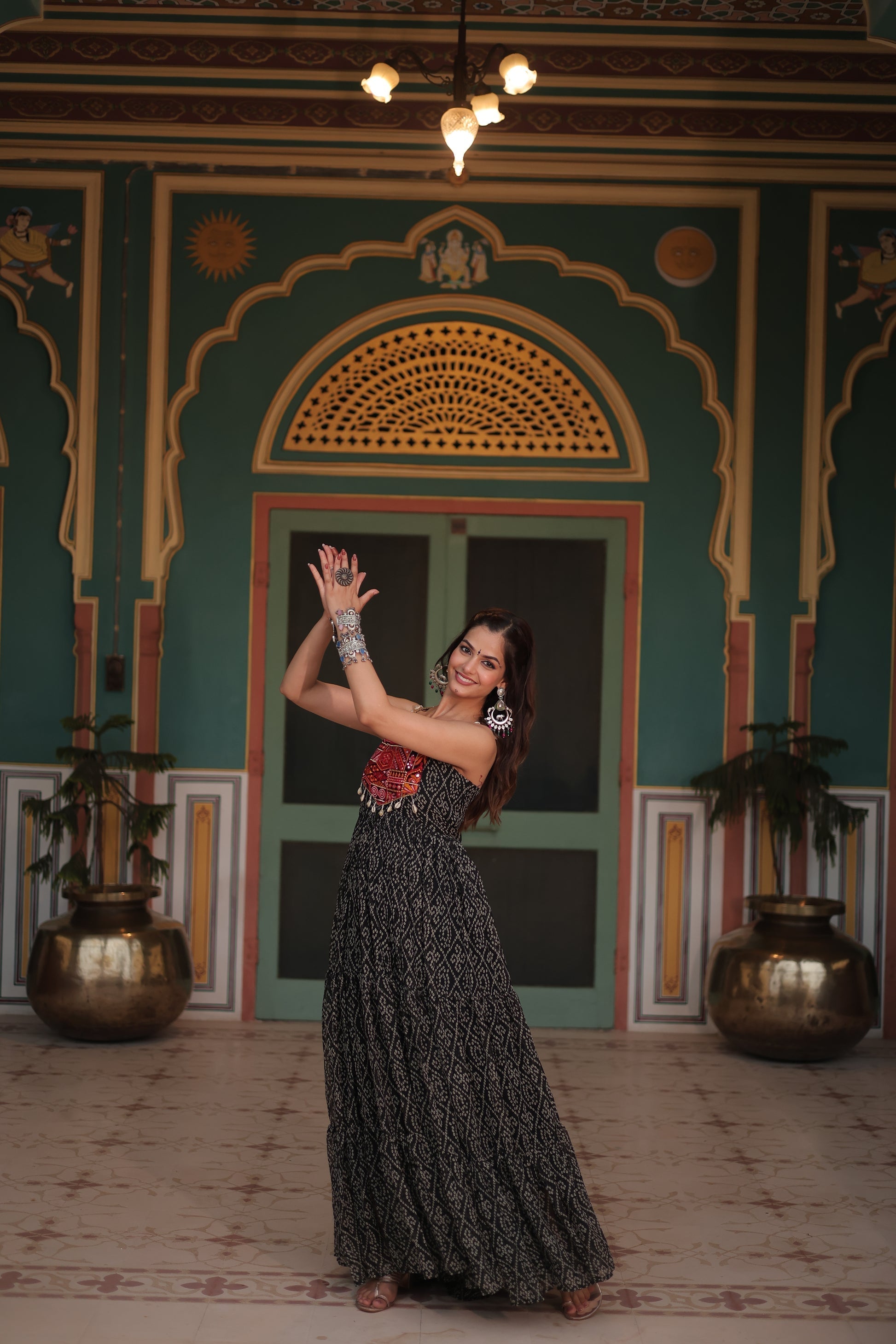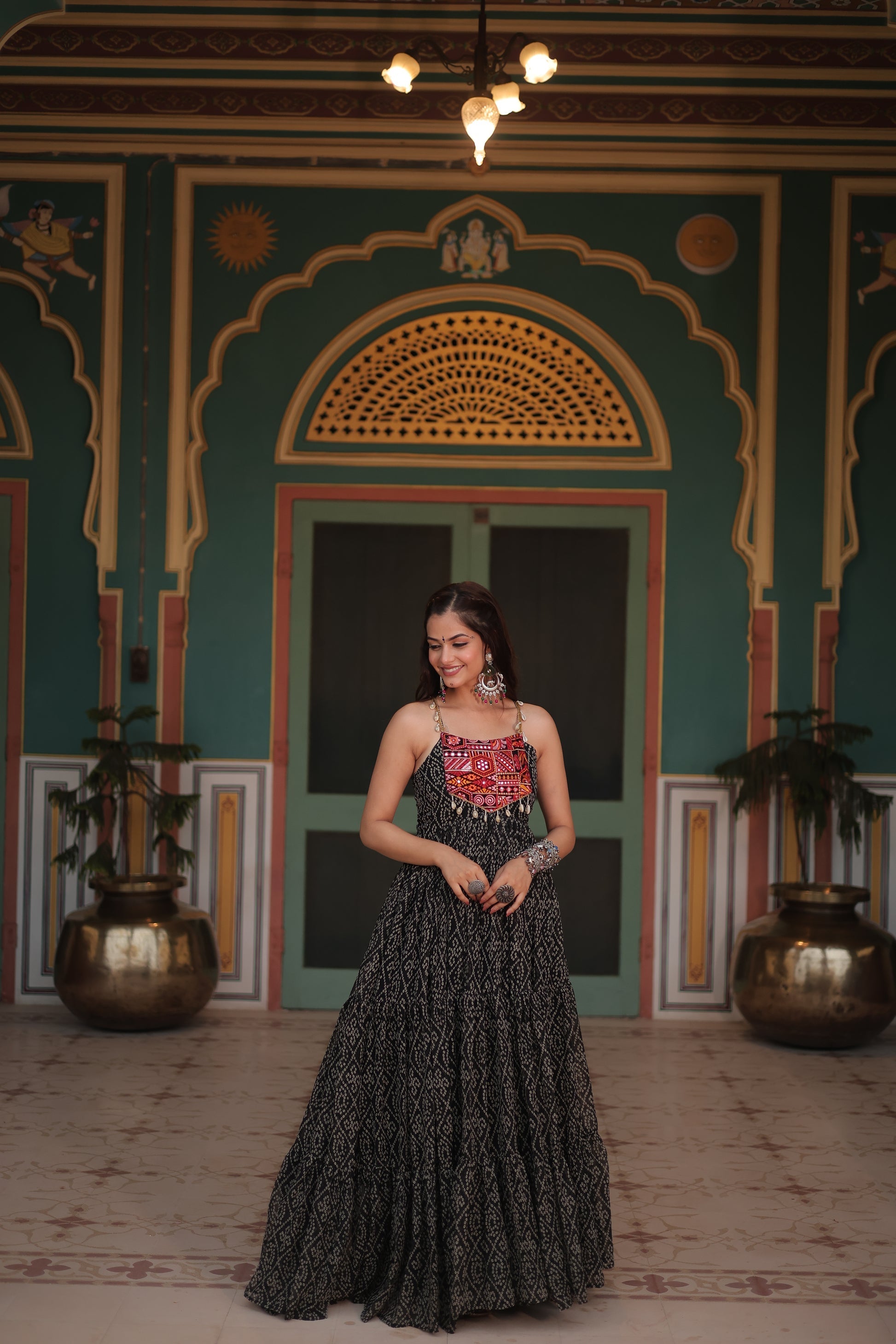 NAVRATRI SPECIAL BANDHANI PRINT PATCHWORK GOWN (WDN48) 01