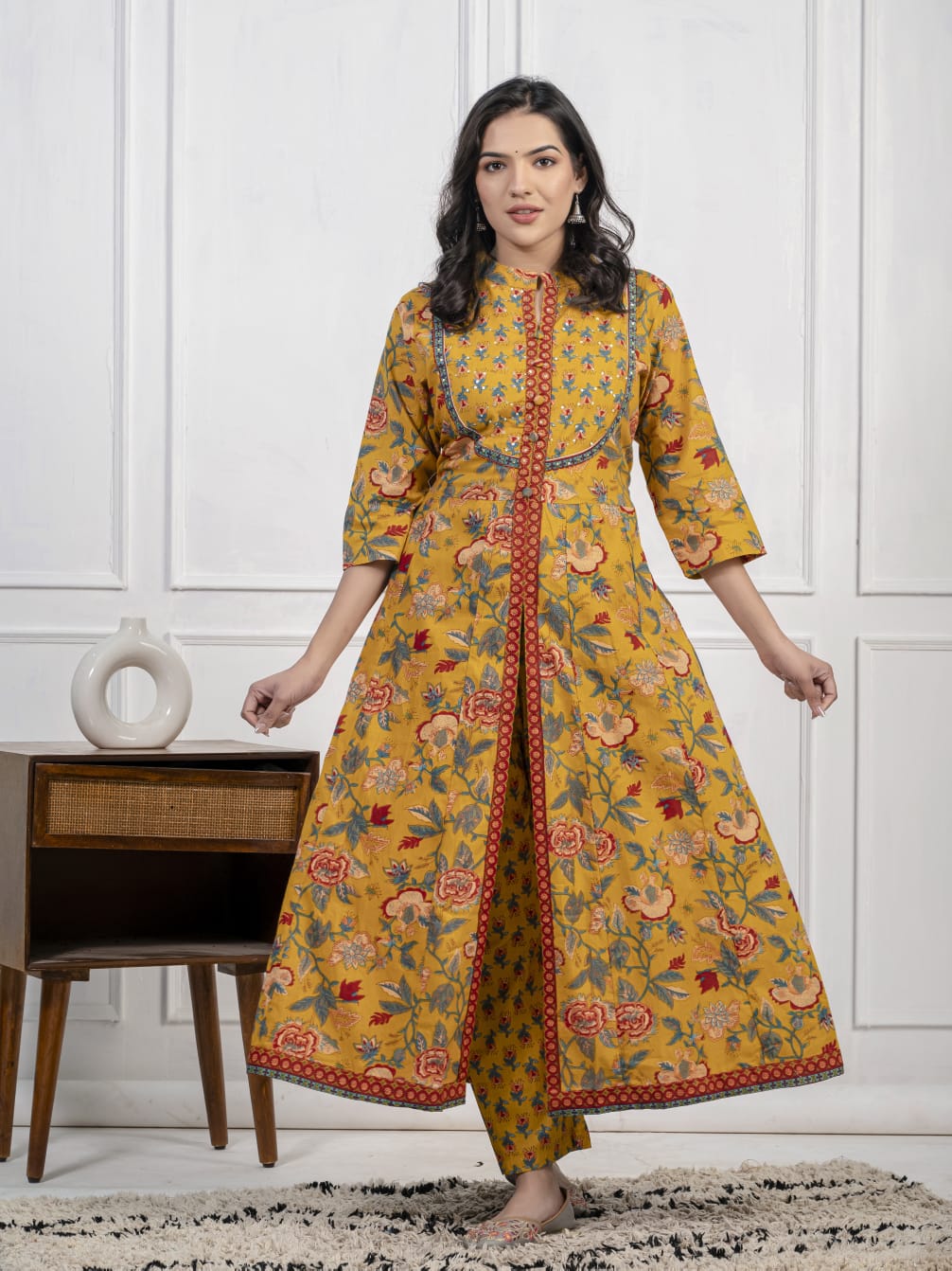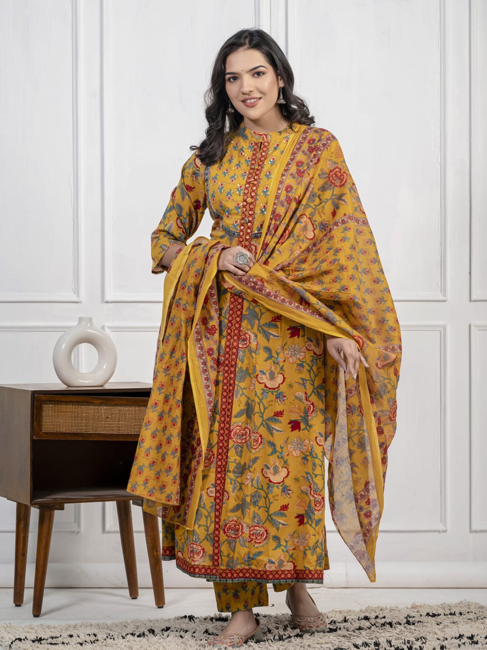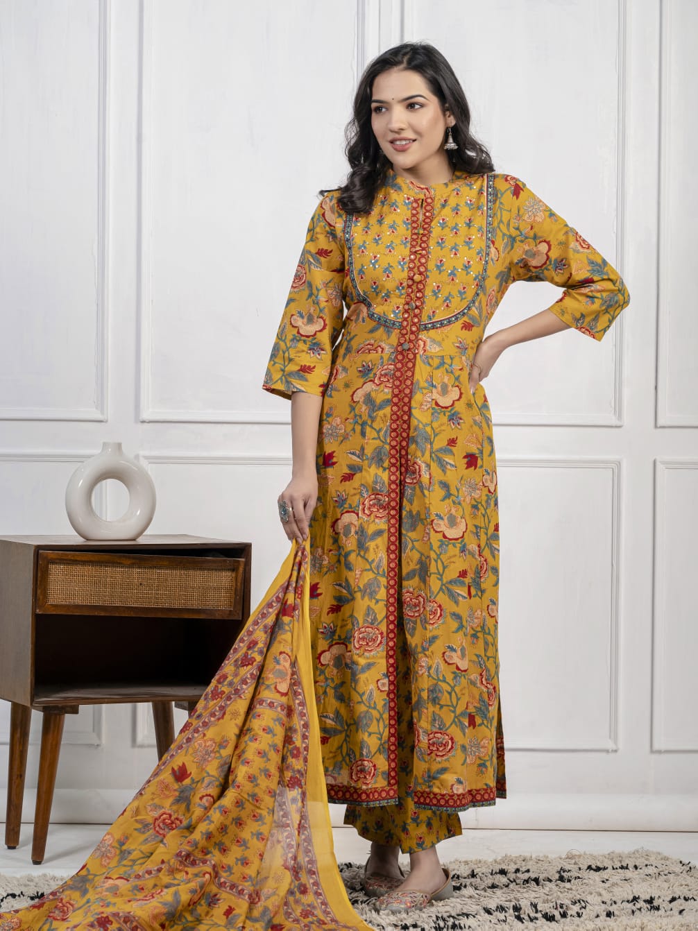 Flat 10% Buy 2 get 10% off New Cotton Festival Collection In Pure Cotton With Hand And Adda mirror Work kurti And pant Dupatta Set (WARED409)