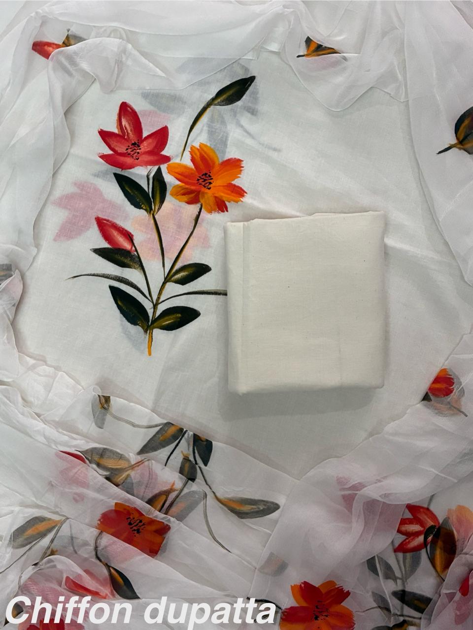 New Premium Hand Block Print Cotton Suit Set with Chiffon Dupatta(WACFCOTMU22)