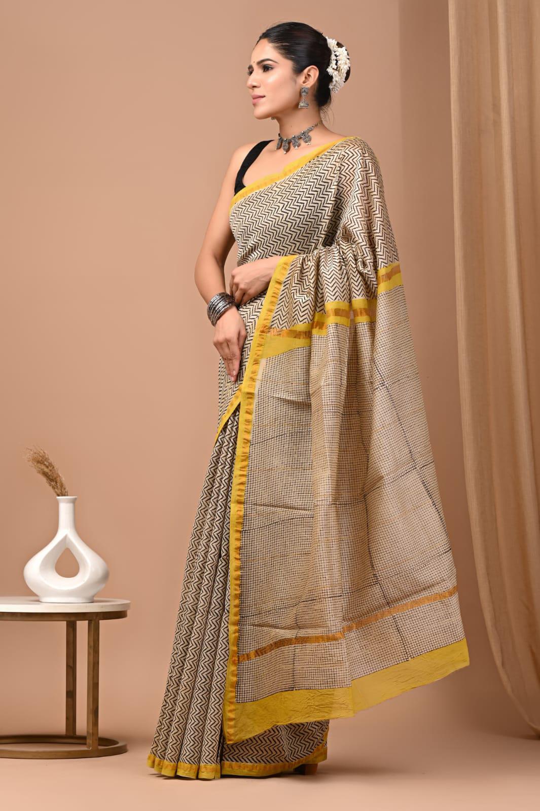 Flat 10% Buy 2 get 10% off Premium Hand Block Printed Chanderi Silk Saree 58