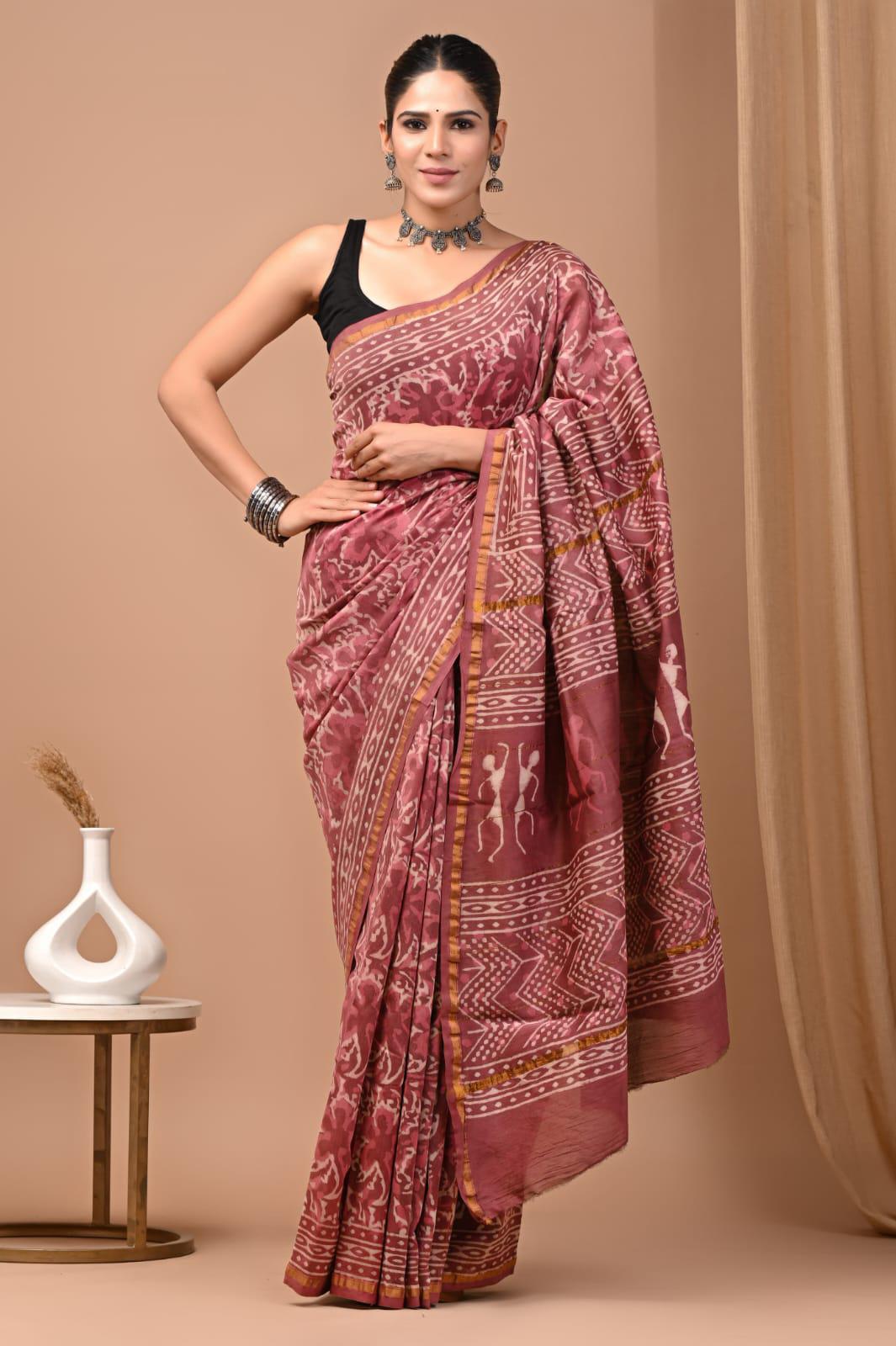 Flat 10% Buy 2 get 10% off Premium Hand Block Printed Chanderi Silk Saree 65