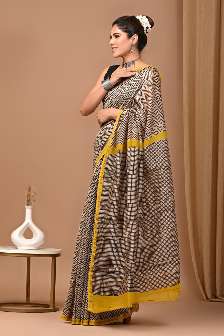 Flat 10% Buy 2 get 10% off Premium Hand Block Printed Chanderi Silk Saree 73