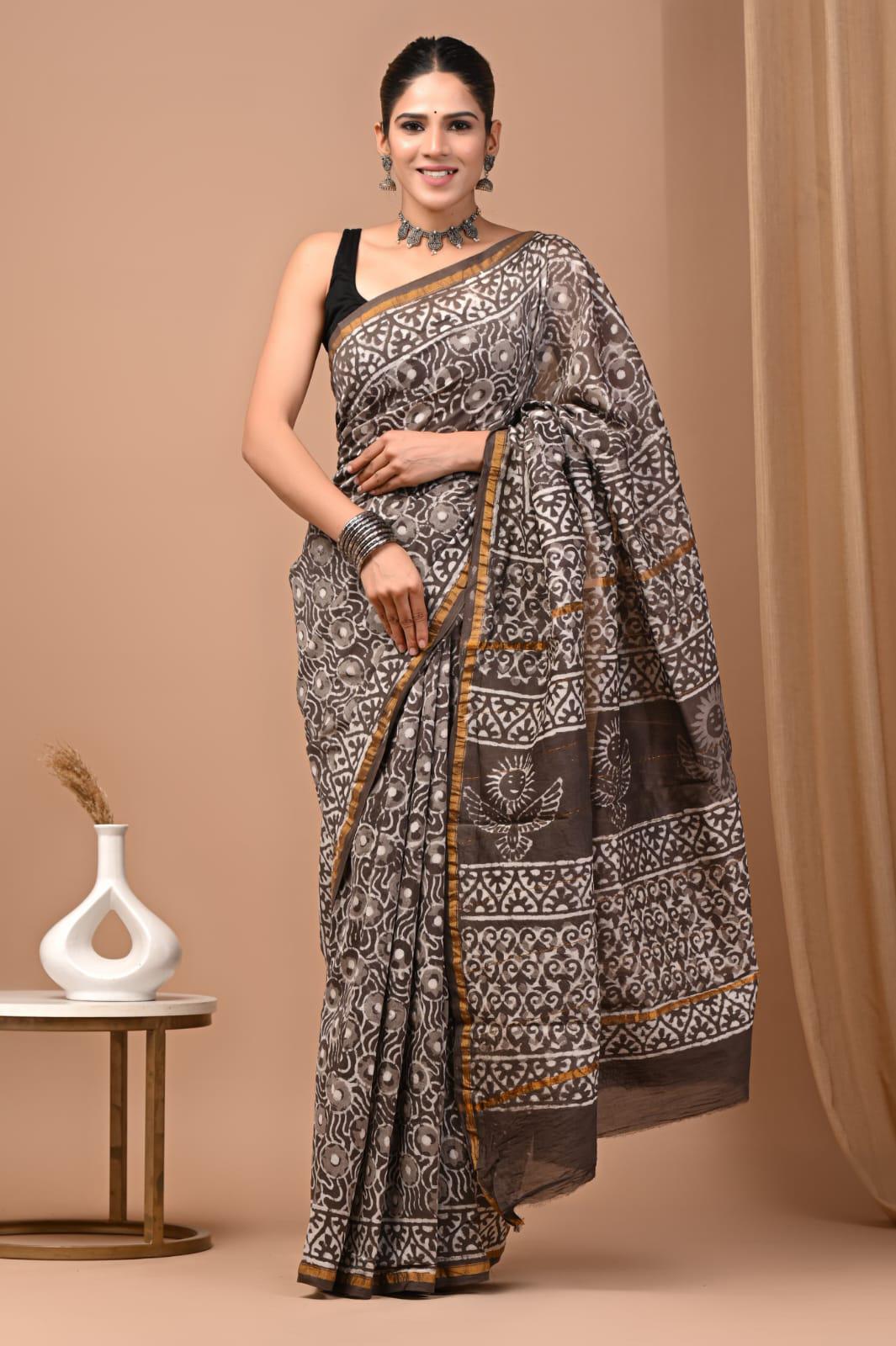 Flat 10% Buy 2 get 10% off Premium Hand Block Printed Chanderi Silk Saree 76