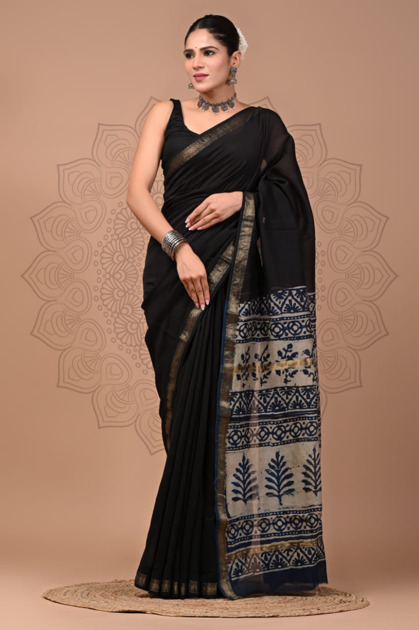 These sarees are purely handmade with hand block print techniques using vegetable dye, not using any harsh chemicals or acids. Minor inconsistency in print, lightness or darkness of print in some areas are natural in hand block print. These are not defect, but adds to individuality and uniqueness to the item.