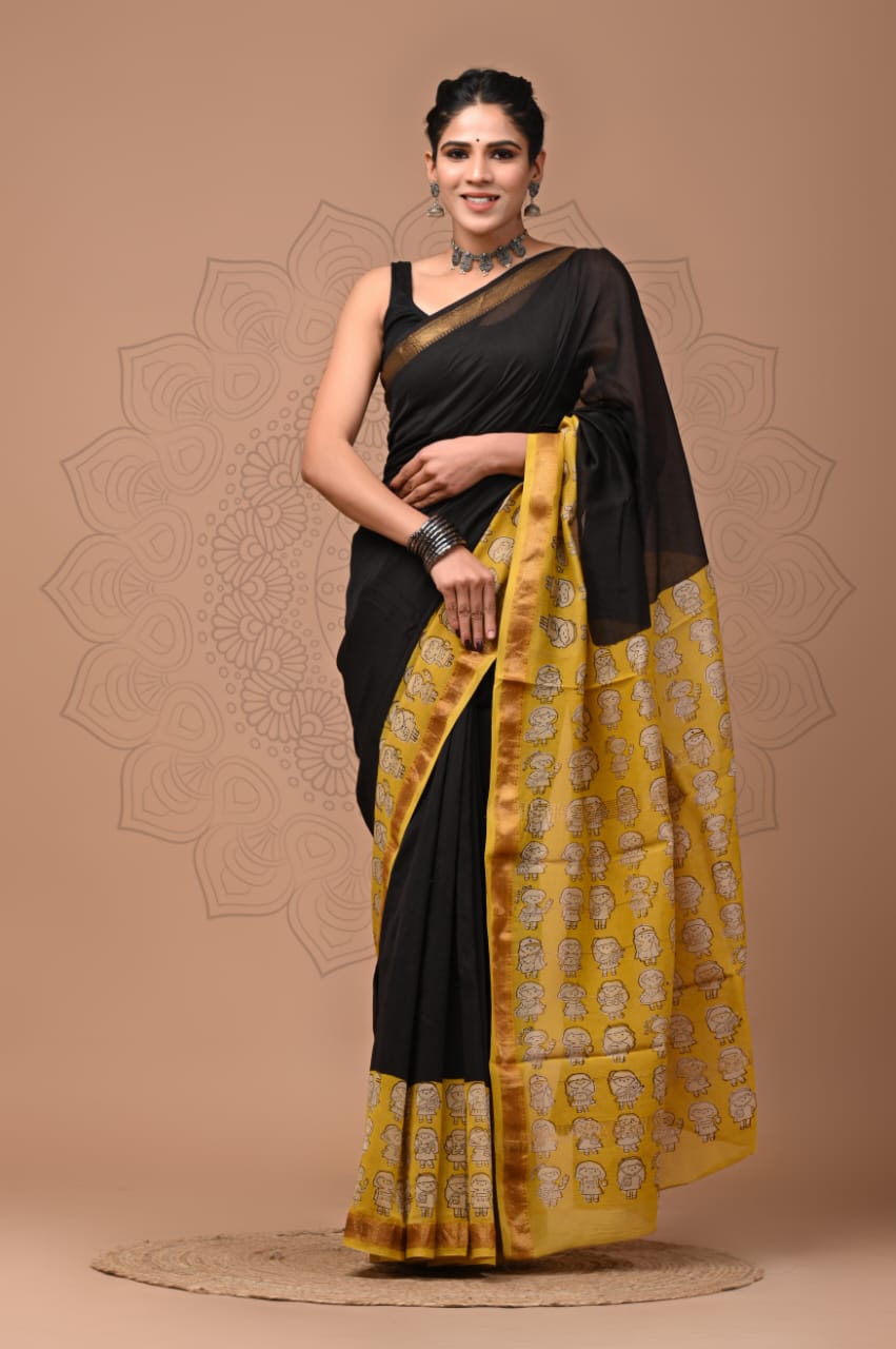 These sarees are purely handmade with hand block print techniques using vegetable dye, not using any harsh chemicals or acids. Minor inconsistency in print, lightness or darkness of print in some areas are natural in hand block print. These are not defect, but adds to individuality and uniqueness to the item.