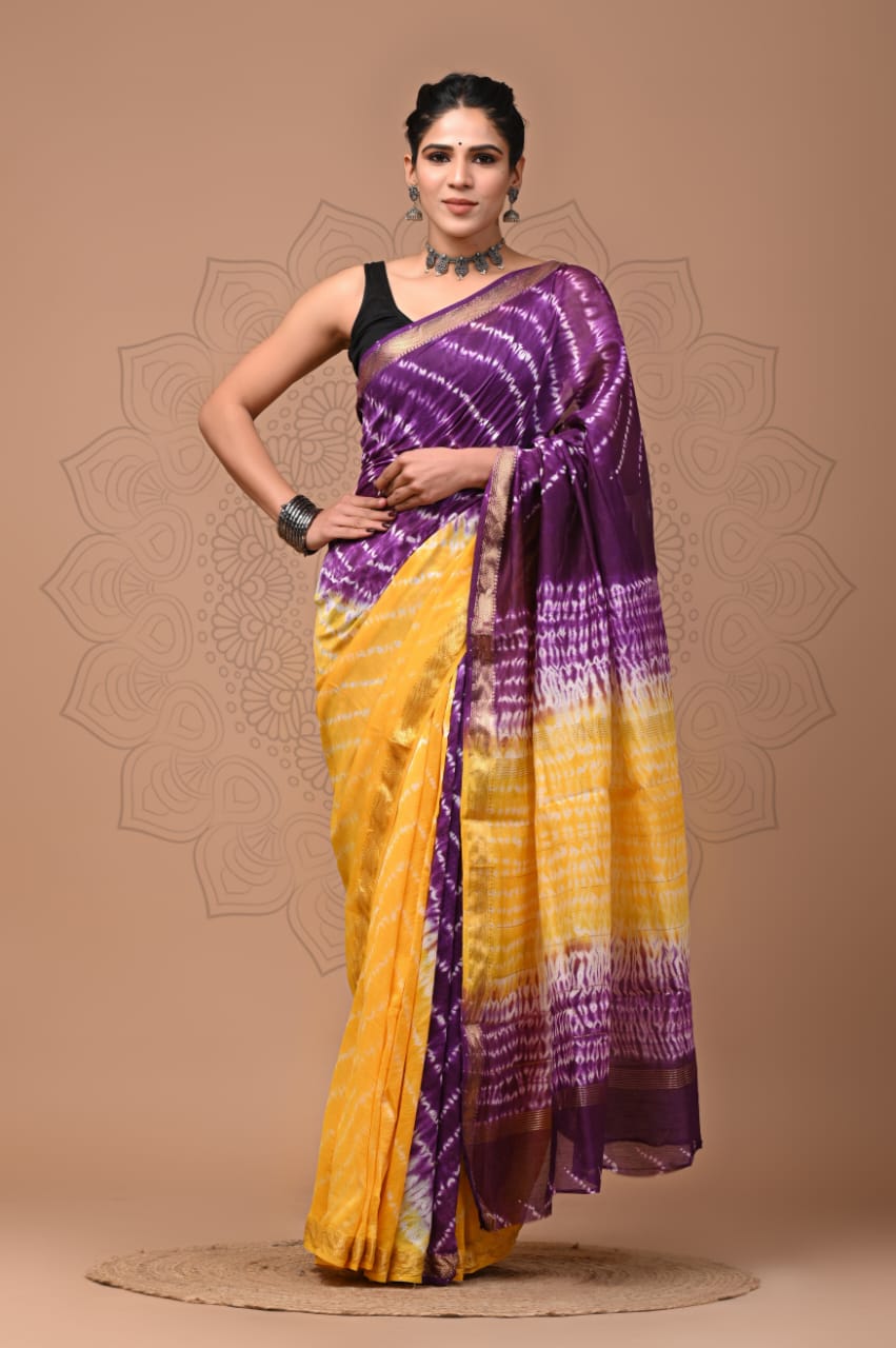 Maheshwari Silk Saree with beautiful hand block print in traditional bagru and ajrakh design .Attractive border and pallu perfect for wedding, party festivals, party, evening wear etc