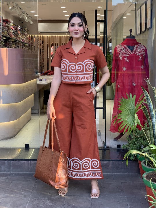 Make a Change in Summer Session your Wardrobe by Wearing our exclusive Cotton Embroidery Shirt Style Cord Set with Embroidery Pure Cotton Plazzo With Two Side Pocket