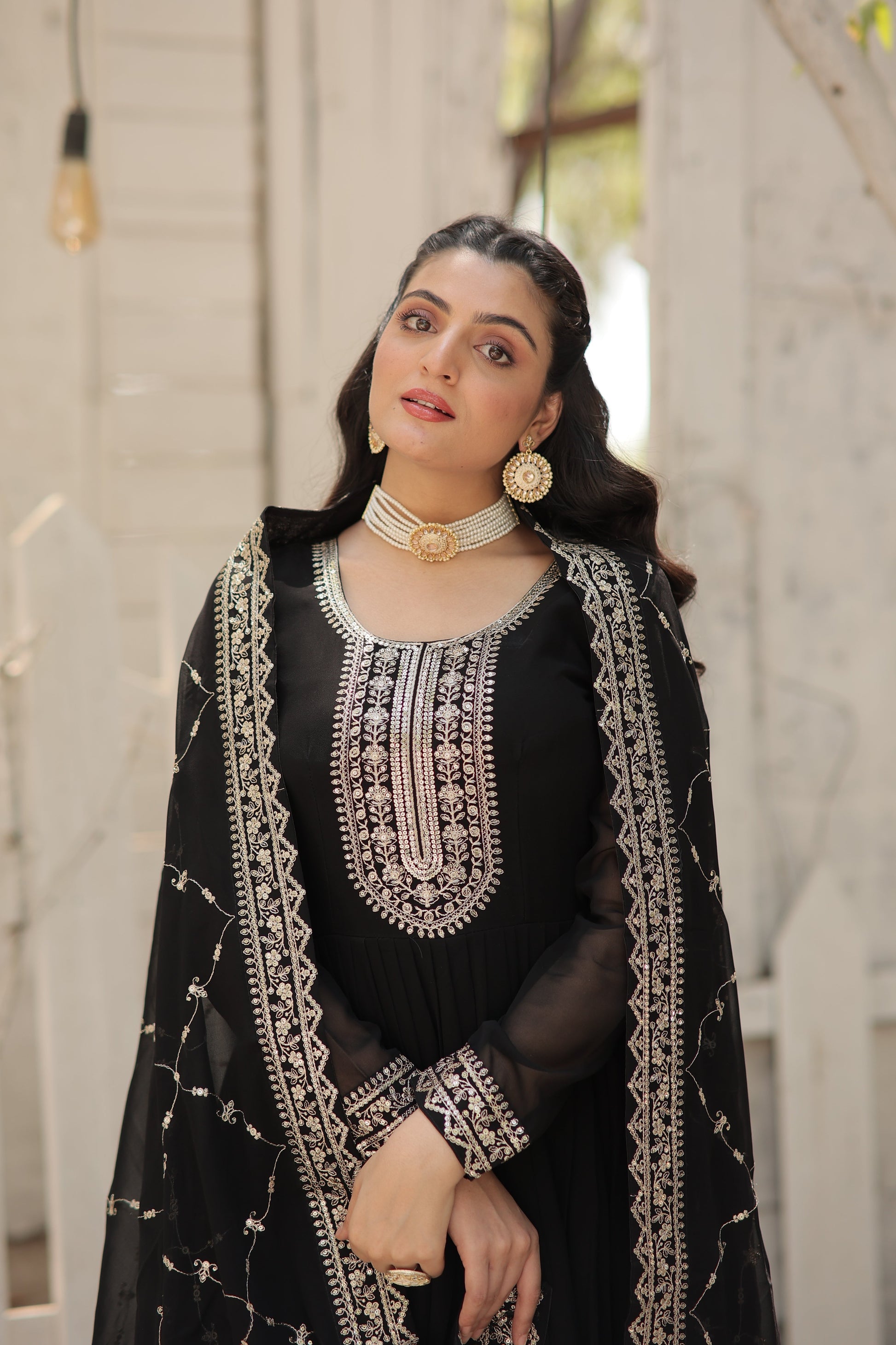 FABRICS & WORK Â Â :- Faux Blooming Gown with Rich Sequins Embroidered work